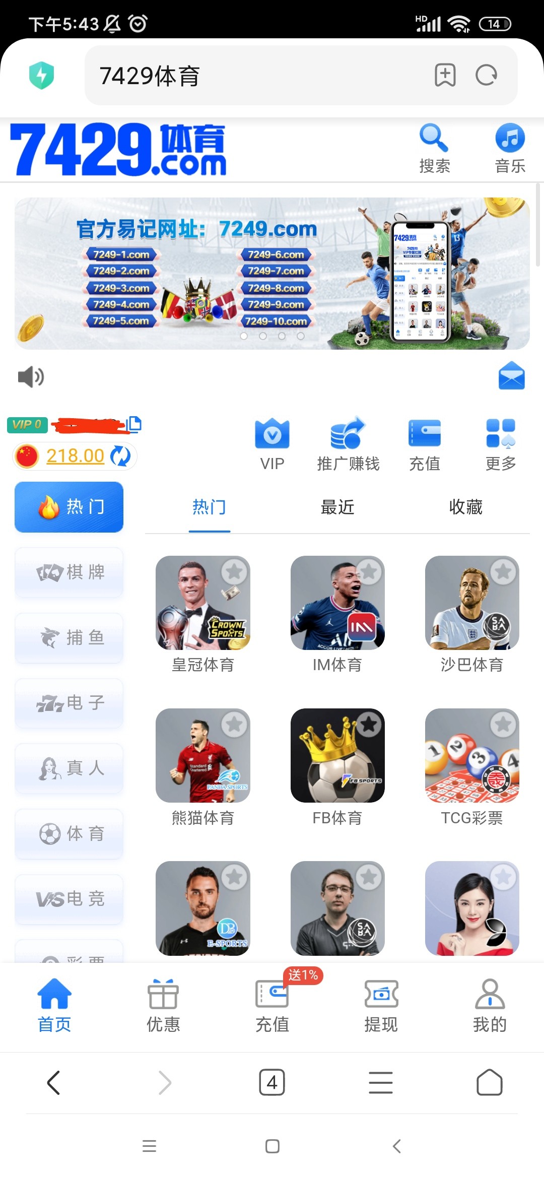 之前注册的,没充值过,今天接到电话说找客服领电话彩金,登录就有218,亲测提现到账
