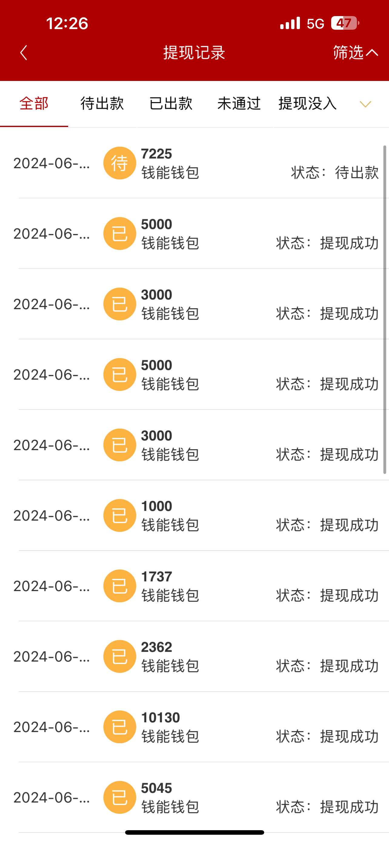 被卡提现了