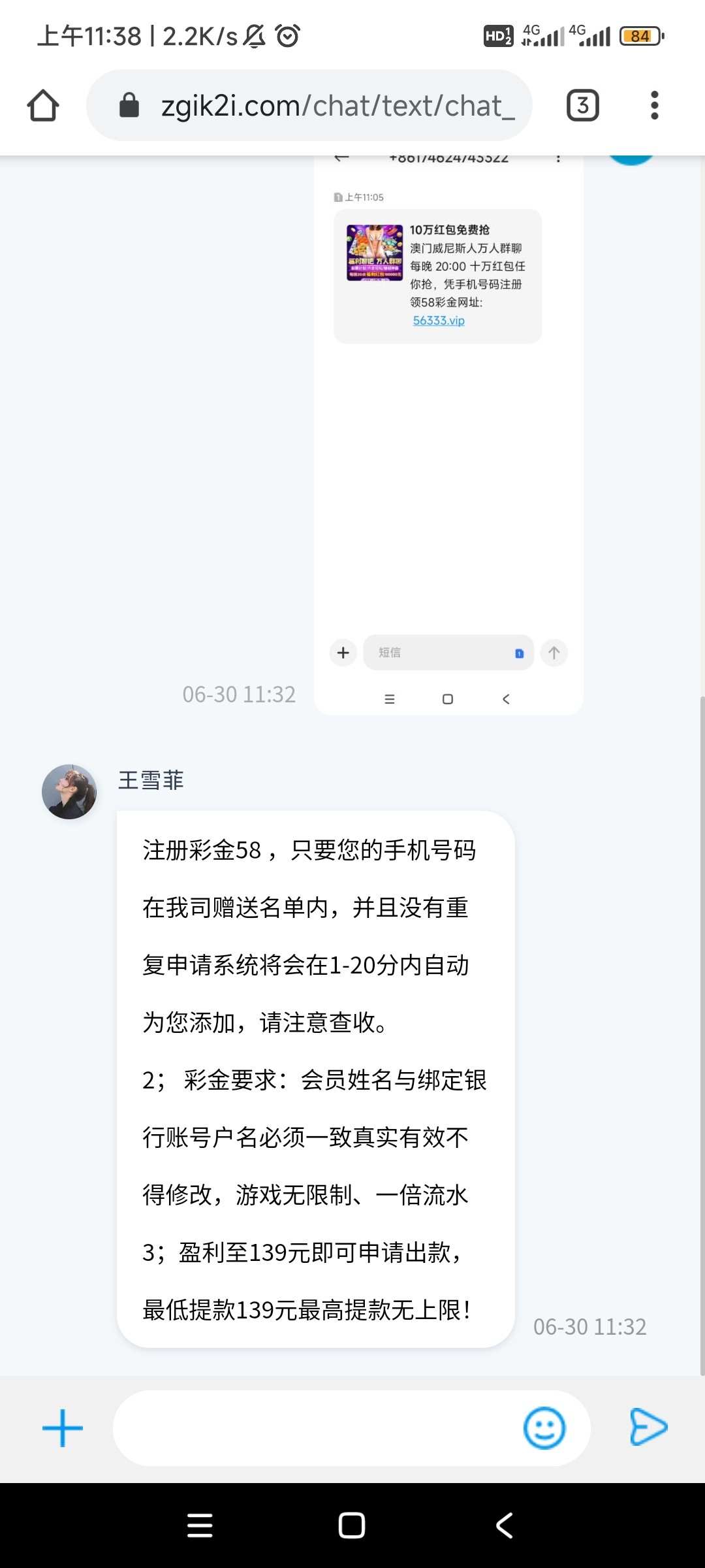 没短信碰到了