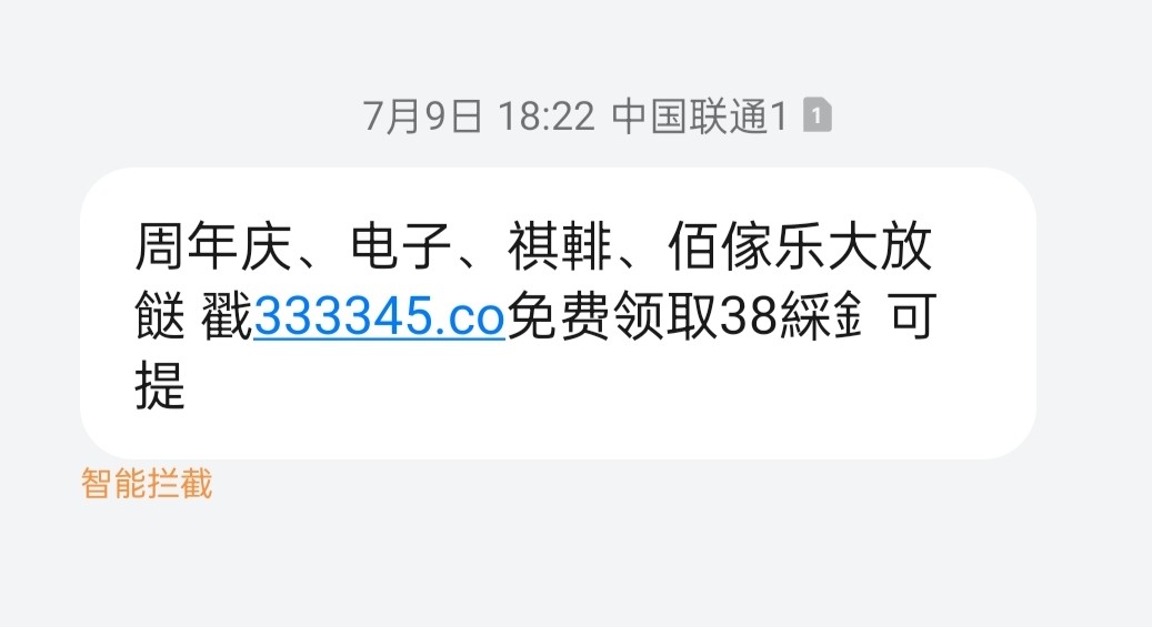 短信内容:   周年庆、电子、祺輫、佰傢乐大放餸 戳333345.co免费领取38綵釒可提
