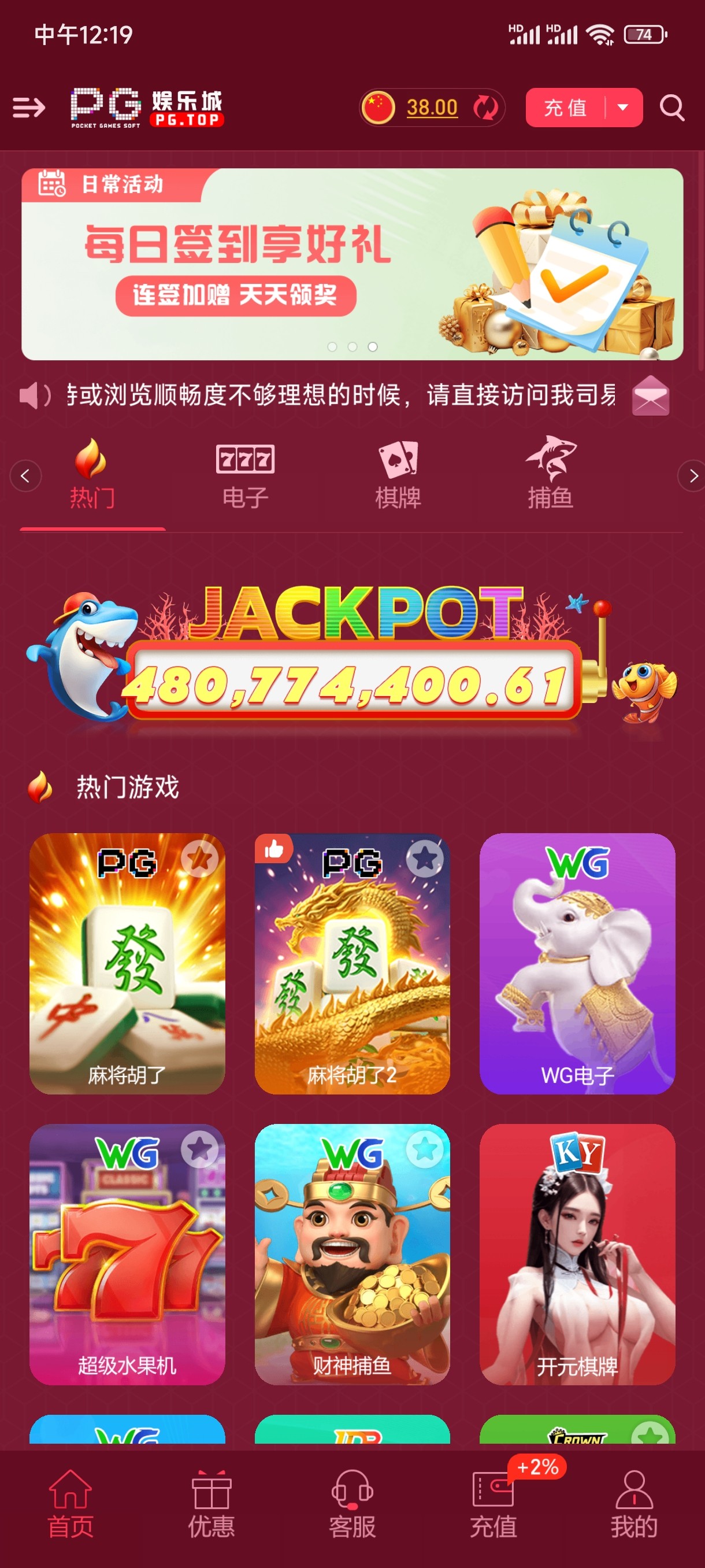 pg碰瓷送了38元彩金