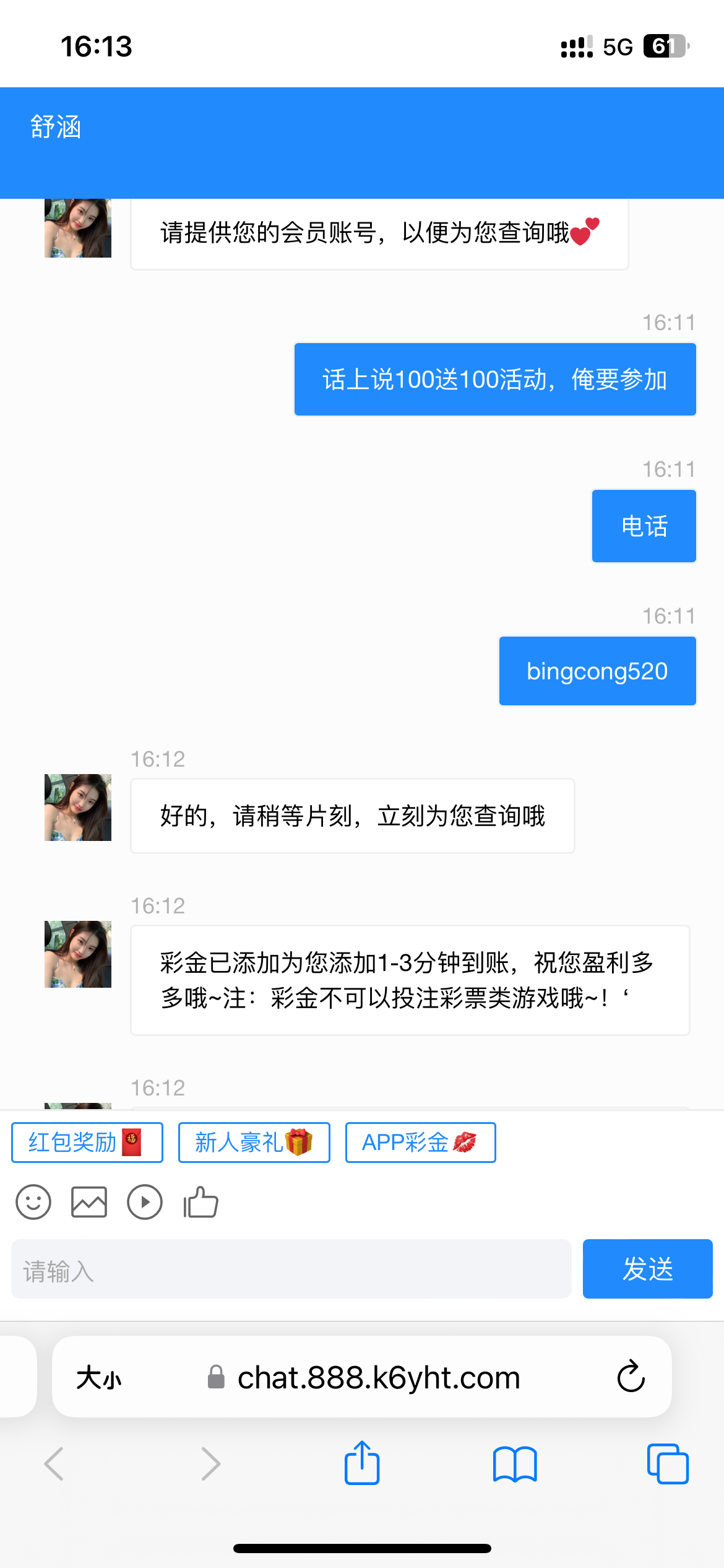 用手机注册,五分钟后就有专员打电话让你参加100送100,6杯水,彩票不能玩其他都可以,怕的别上哈,我是挂逼了。电子没啥水
