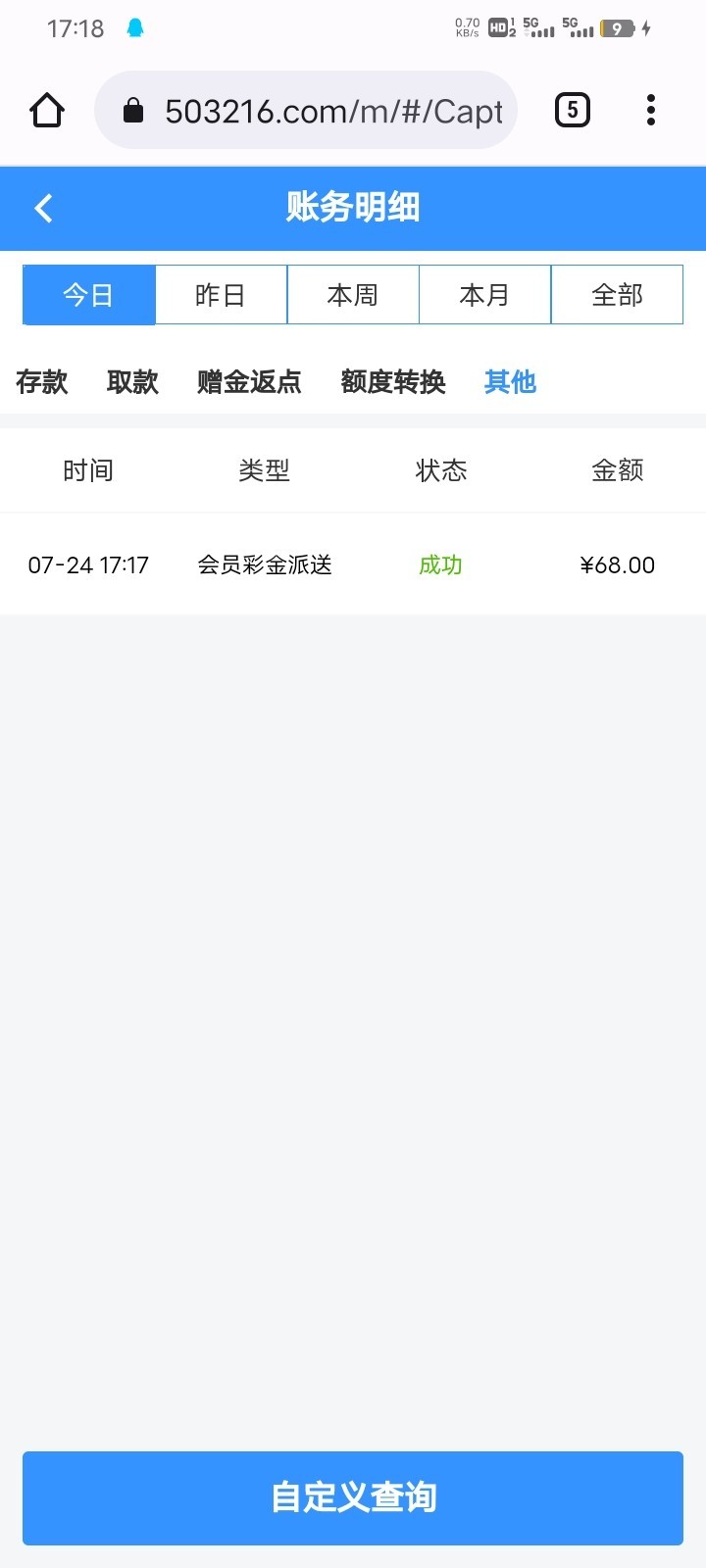 碰了68回馈彩金第一笔200需要充值同等金额就后面就不需要充值了,然后赢了400  我提了后又充值30  180   20   有领了58彩金然后麻将1一直赢提款总感觉要黑就是没黑最后还给了可以玩感觉半黑看脸玩了整整一夜麻将胡了