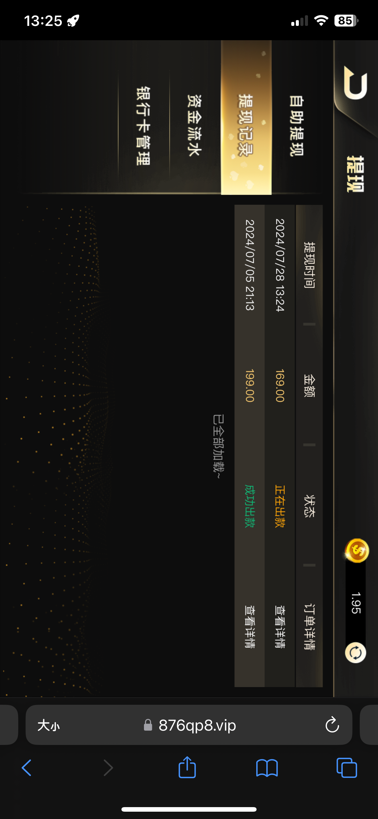这个台子充100提现10000都是秒出 多账号都可以申请回归彩金 有水的时候真的好牛逼 没水搞多少都不行