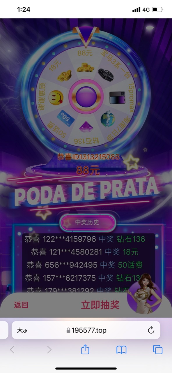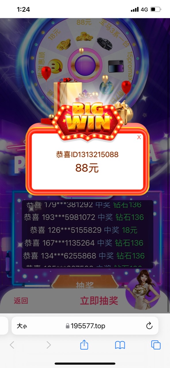 登陆木瓜本来我想充值的 跳出来广告看到能抽法拉利我就点进去了 唉只抽到88彩金 没充值一分钱 注册好久了