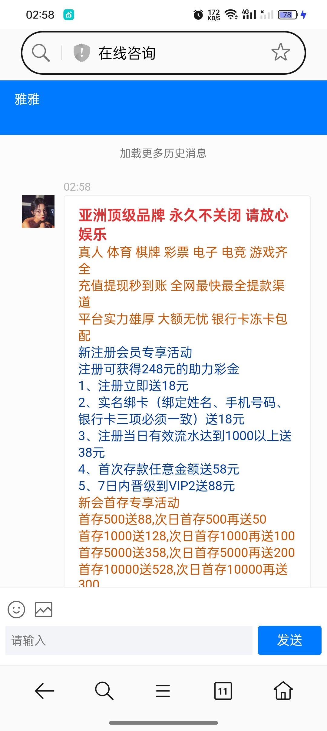 被拦截客服送18彩金