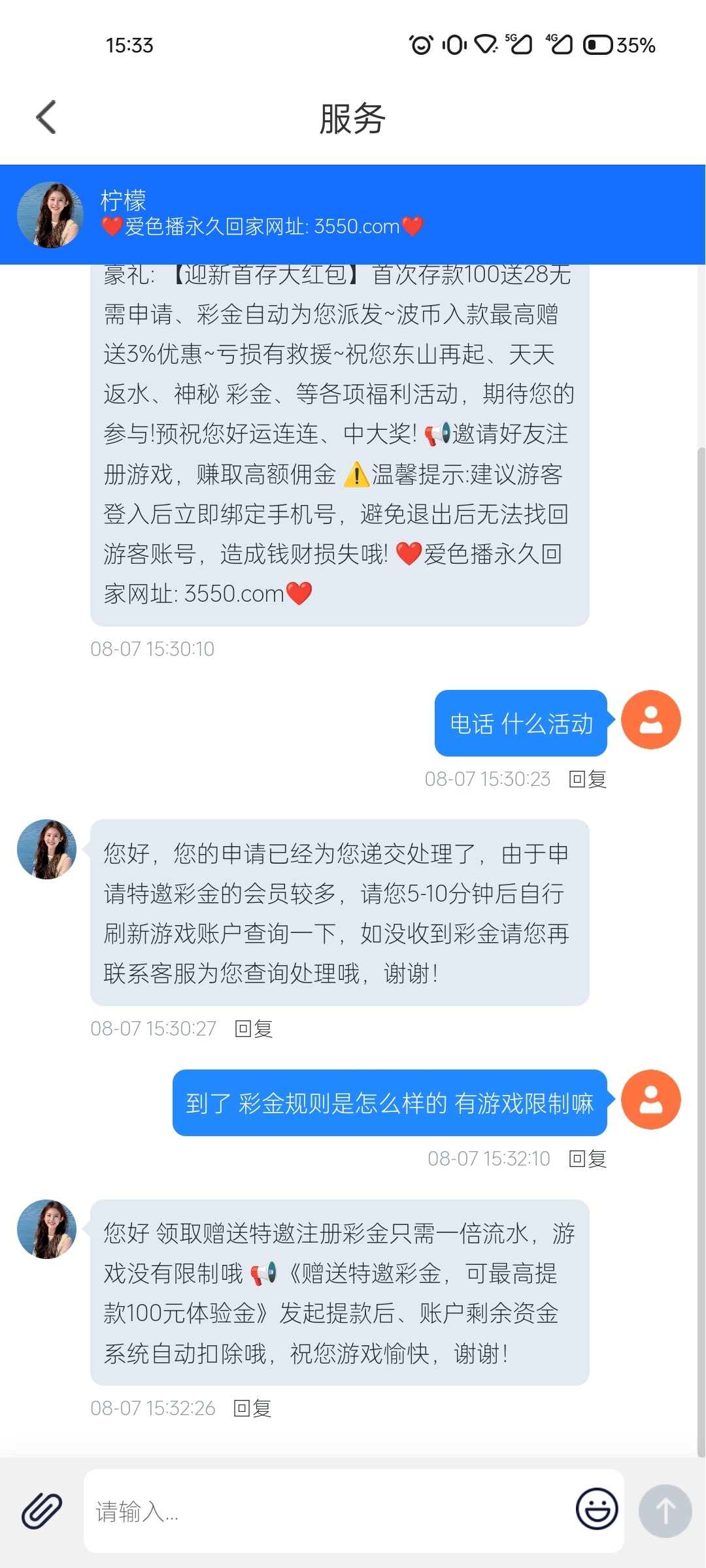 每天收获小进步,积累起来就是大进步;每天收获小幸福,积攒起来便成大幸福。网址3550.com 之前去了没送的再去。之前发帖我三个号送一个。这号之前没送,现在去了秒送。都去看看