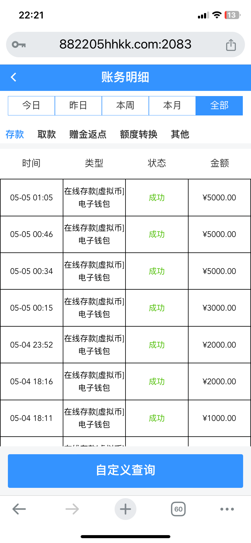 8822可以的充值500出6000充值的出款问题应该不大