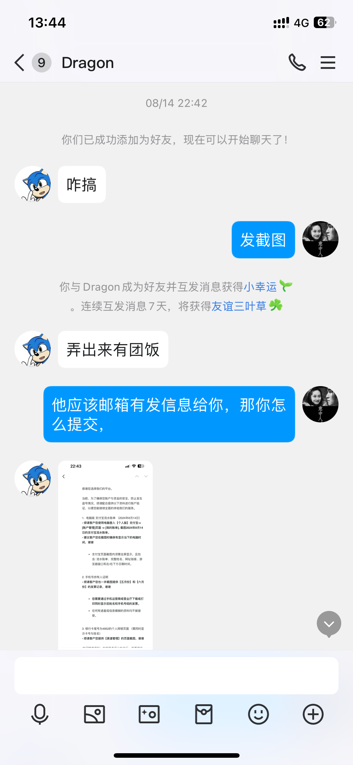 你把你教我的发出来,教我看邮箱?我说我是联通的新号没有发票没有名字我自己p的图,还是说你给我发票帮我p图