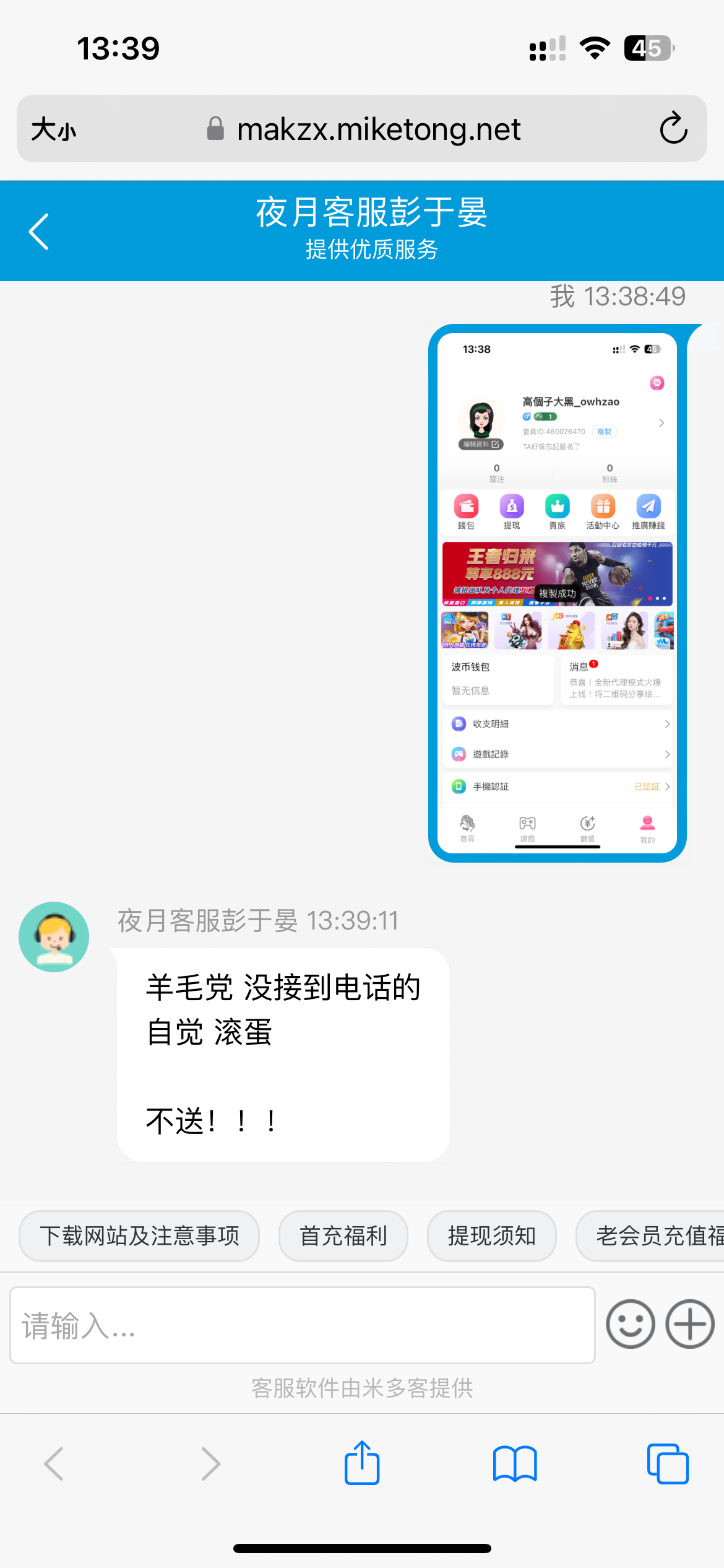 sxw123 本平台 三倍流水 意思是 提现100 需要300流水 1000需要3000流水依此类推!! 注册金只是体验,为防止薅羊毛,需要首充激活账户提现功能!!! 提现时如果充值和提现的渠道不一样需要找在线 ...