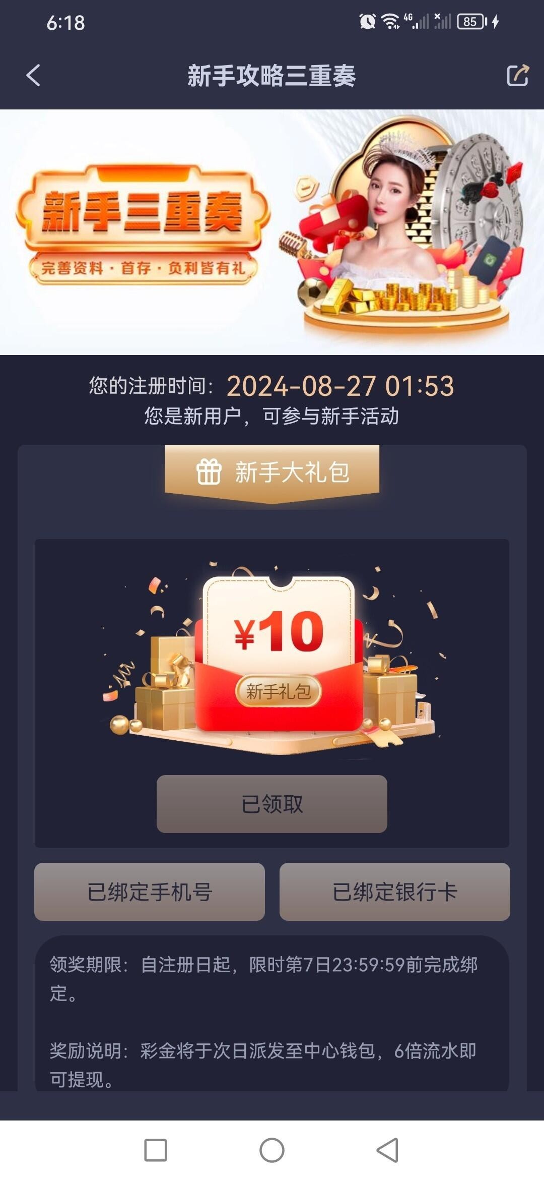 绑定手机银行卡领10彩金
