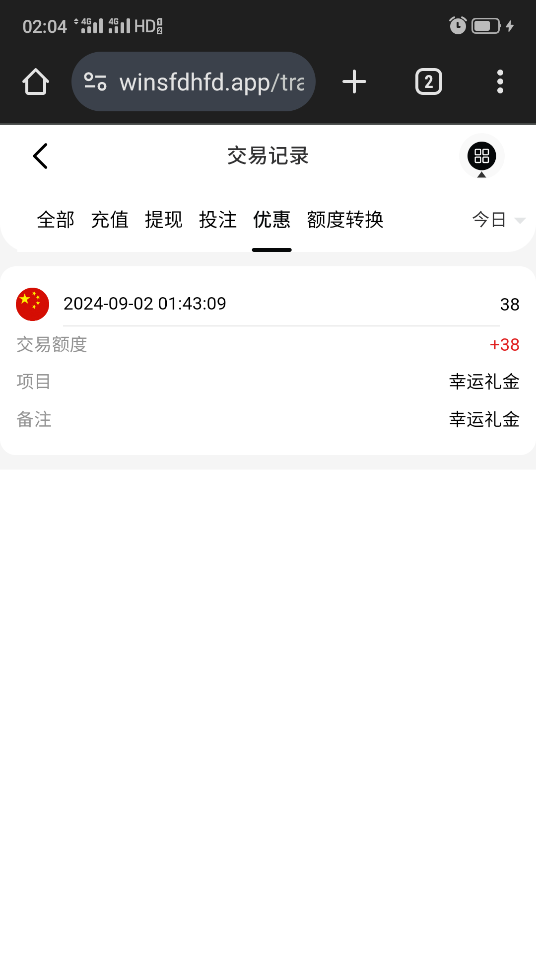 账号注册了两个月了,刚看见朋友注册秒58,我登录看下送了38,这台子无论新老用户是特邀登录就会送,以前注册了没送的,现在登录看看吧,网址5858.com