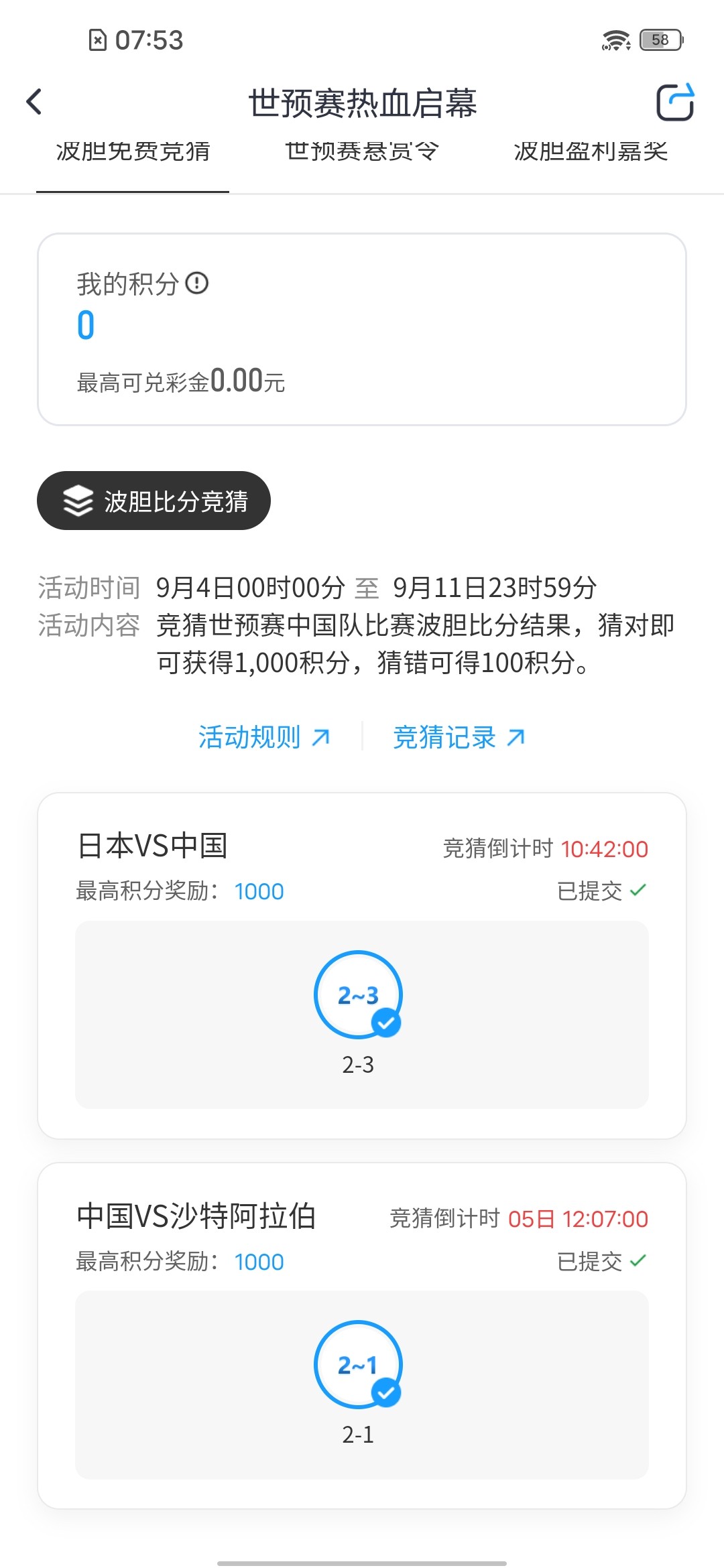 竞猜最高得1000积分 有2次