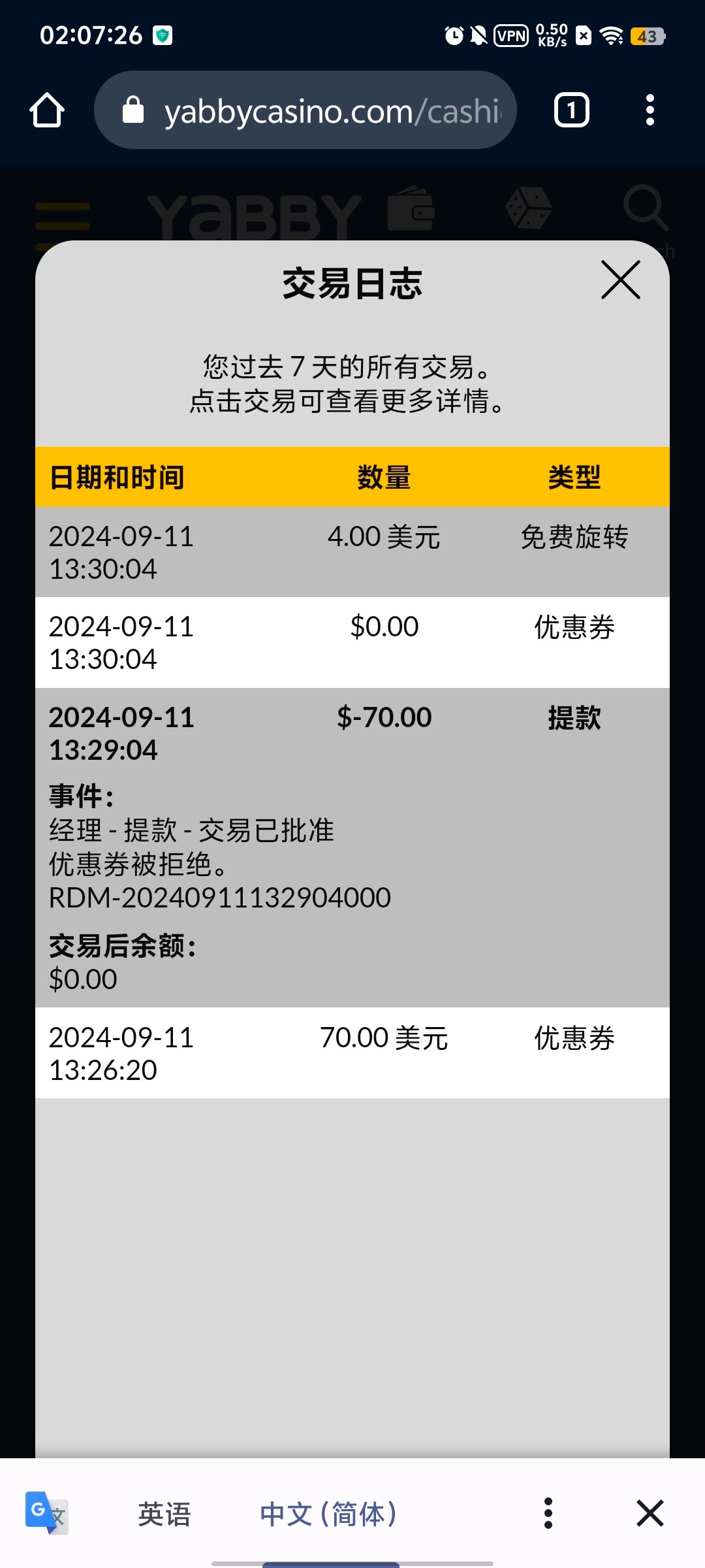没水  400流水杀完  0.5美元进免费 免中免给15块   最低给0.2  比麻将还离谱