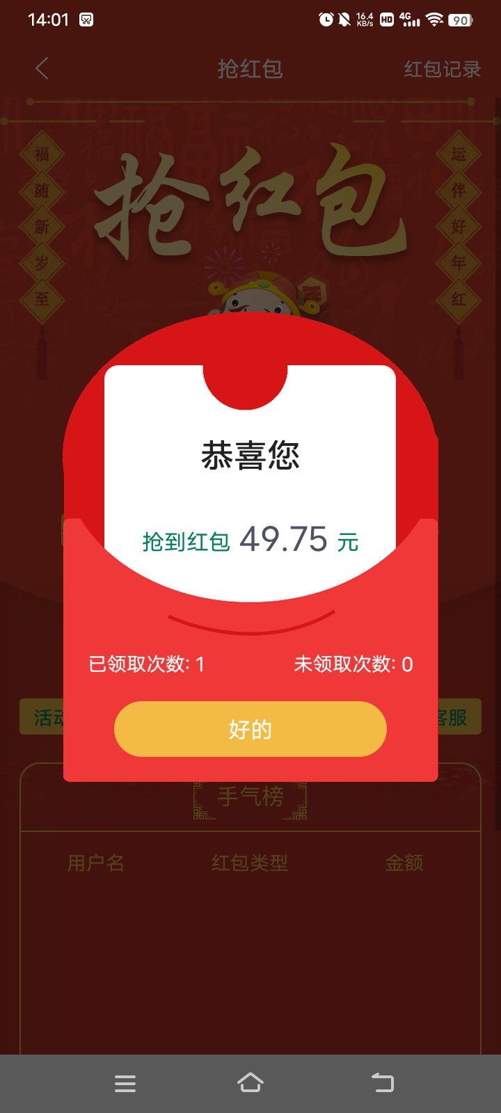 没有,可以不用养了这些垃圾台,红包也是一块二块的,抢红包活动和没有没区别