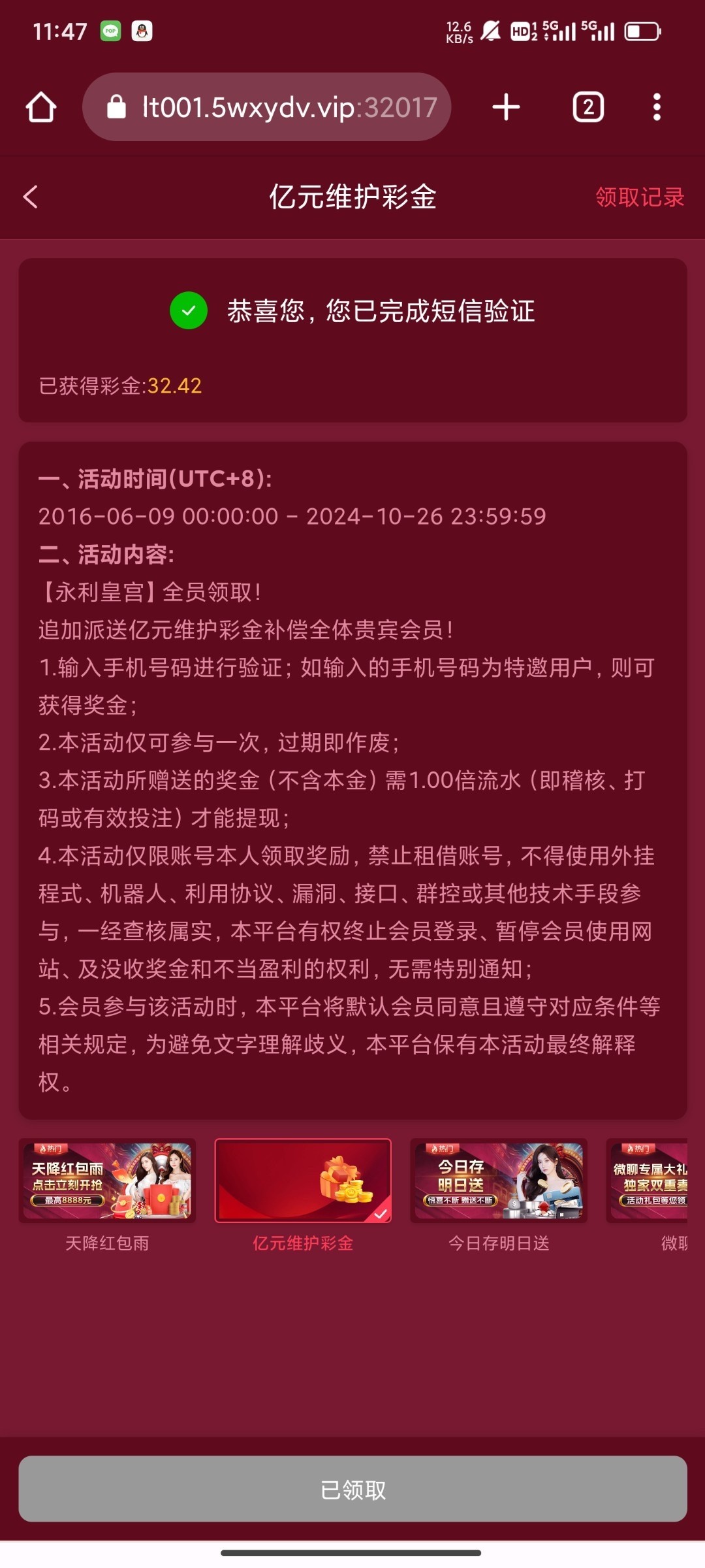 不是特邀不能领。5五个手机号都不是。