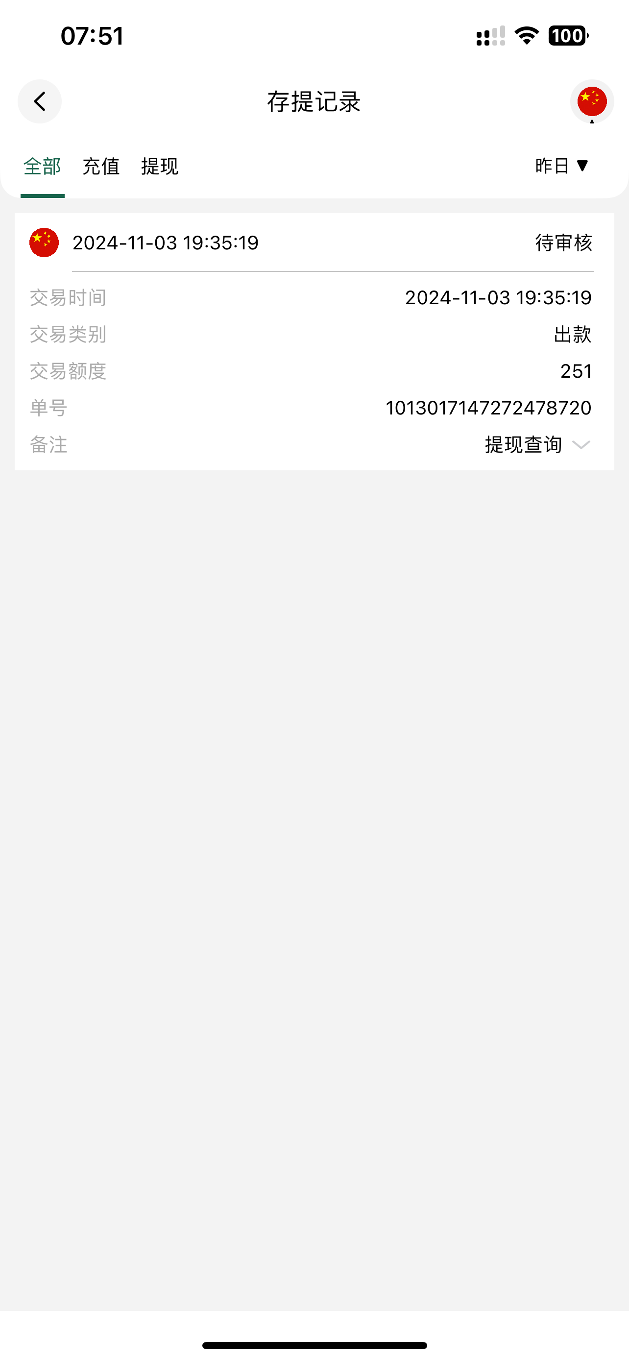 shi222333 提款一个小时了还在审核,打到300没提,提100都要审核这么久