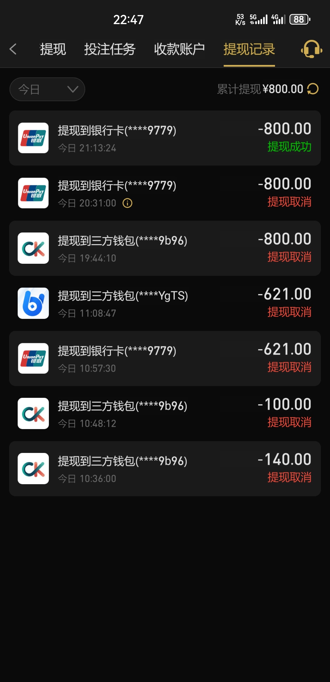 烟鬼502 180.我现在413一直提现取消,很烦,人家800都出了,就不给我出