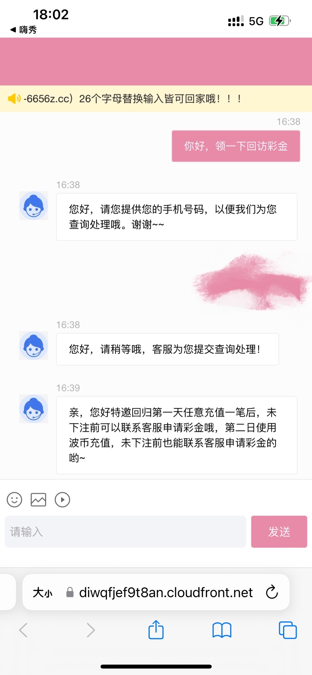 回访送18,没打出来,超过30天未充值还能参加100+88我还没打,网址6656.tv