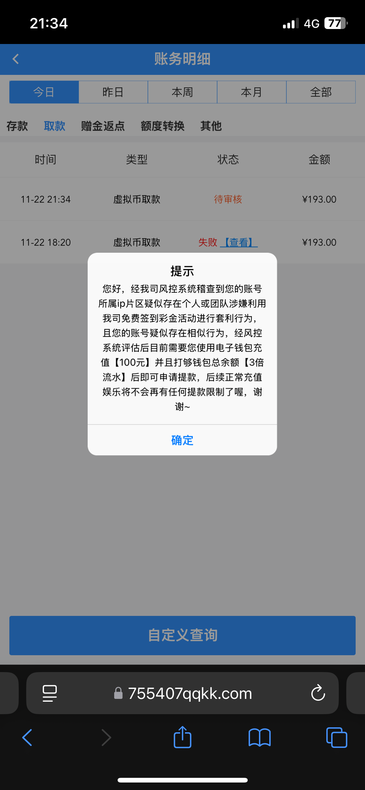 wdnmd555 妈的,炸了1900,然后充值100打三倍水,充了打到4000,然后提给我扣成188了