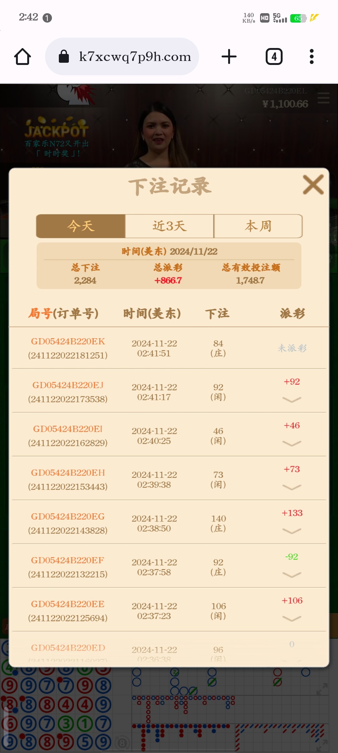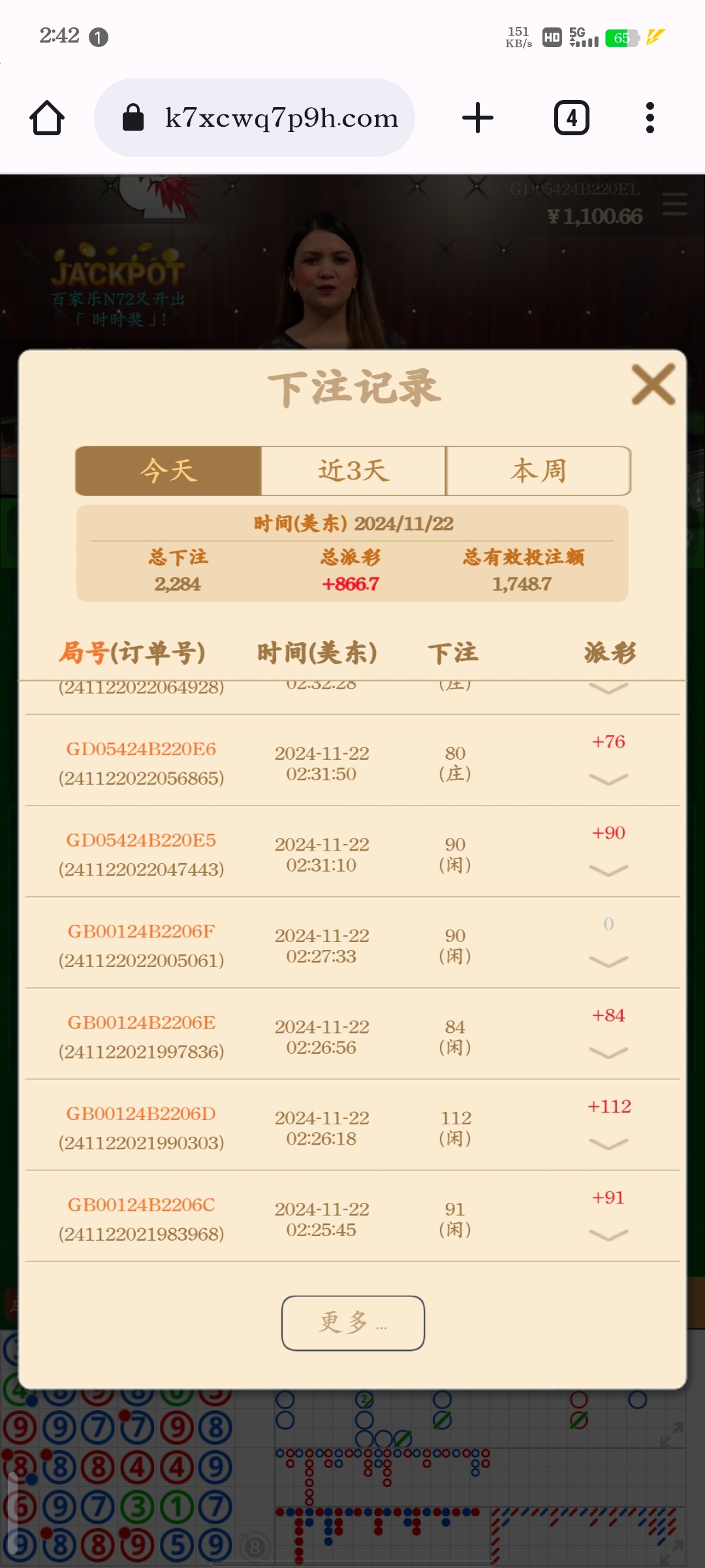 今天最后500,充了400百家乐小打居然没有杀我一直连中,回血1000