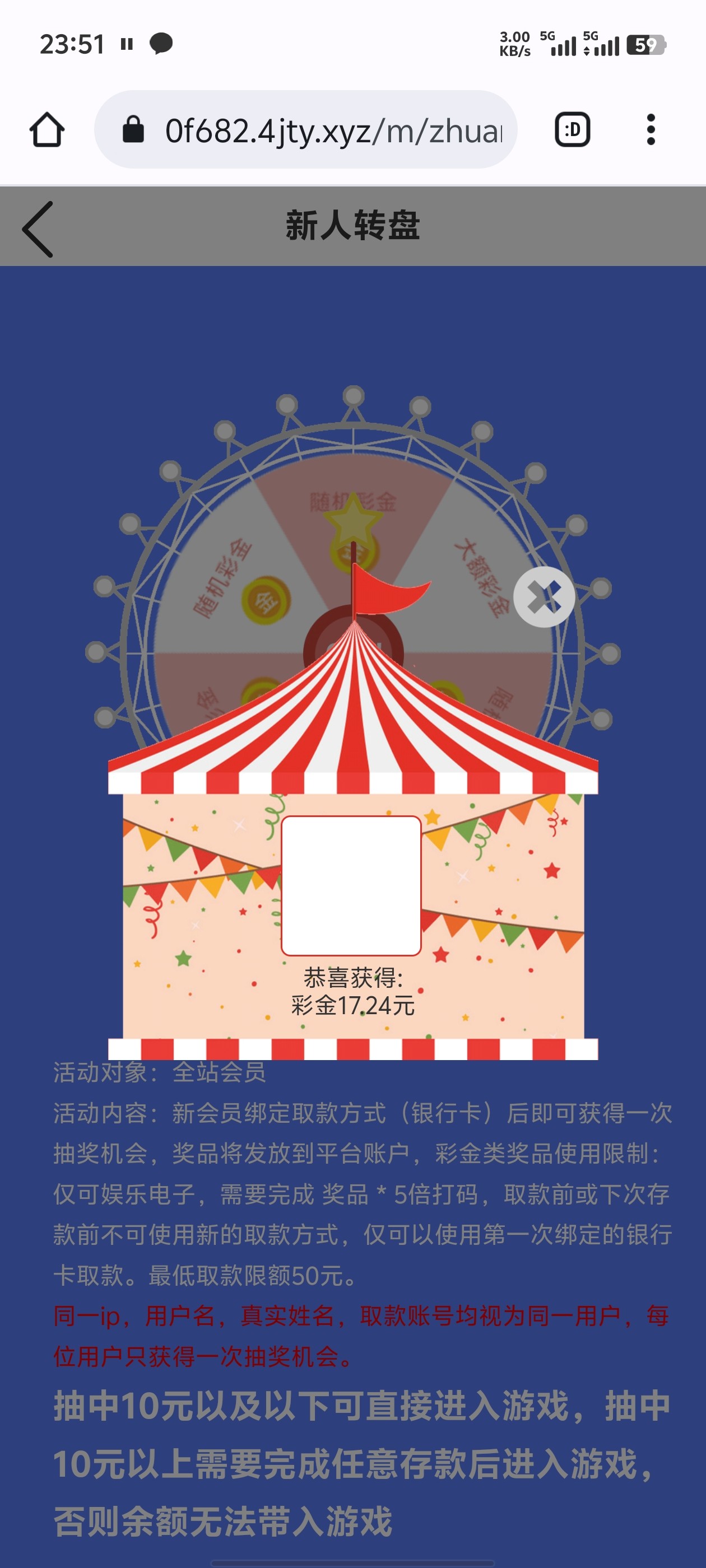 新用户注册绑卡右下角礼盒抽取彩金,多少自测吧。