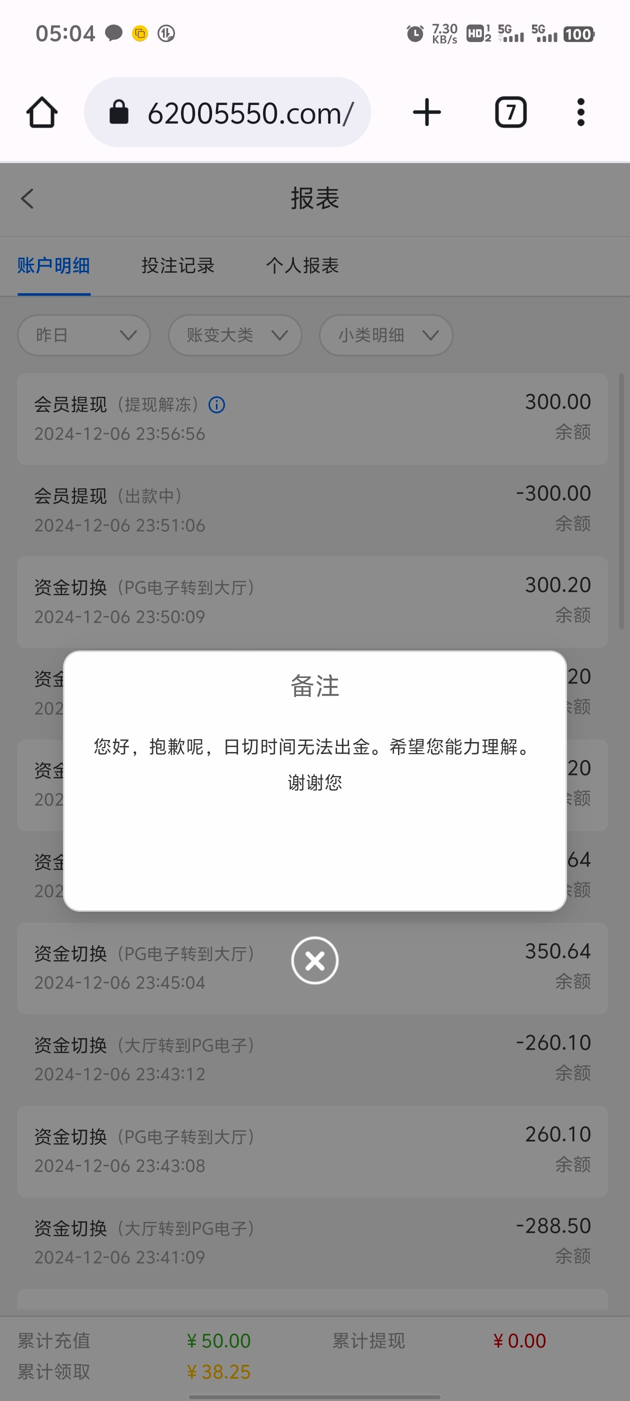 6200皇冠集团,看到你们发的首存50送38,去试试结果第一次提现显示日切时间不能出款,后面0点去提现等十分钟不到,就去领返水打了真人。完事一点多给我退回,5点多起床上厕所看一下手机天塌了,违规投注!理论半天退本金还要手持身份证审核!逆天台子