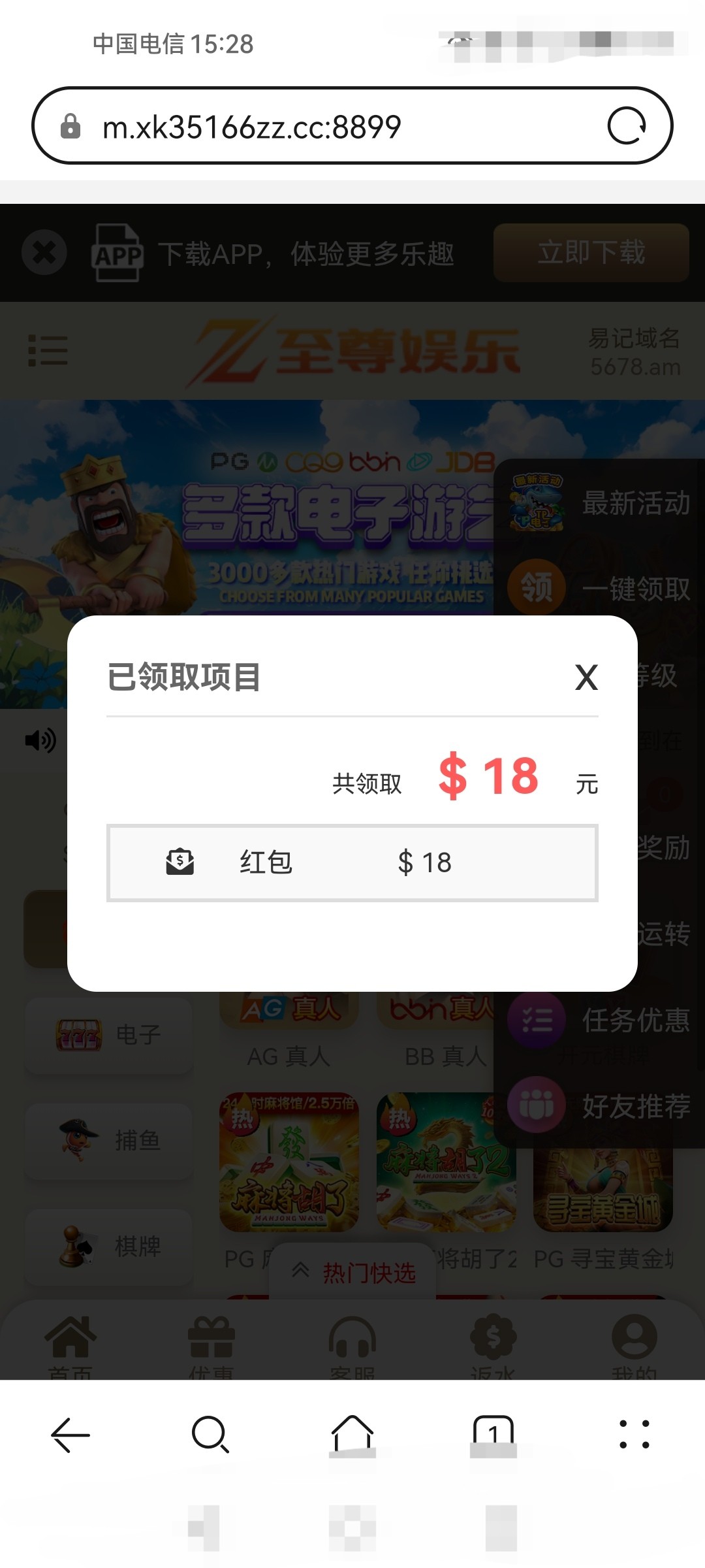 电话机器人回复的,登录就有两个18一共36可惜麻将没水,一点没爆官方网址:7878.am