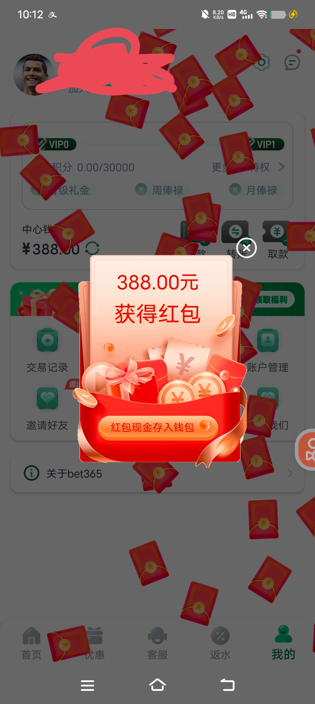 又可以领388彩金了昨天充了100今天领了388打上了1000已到账