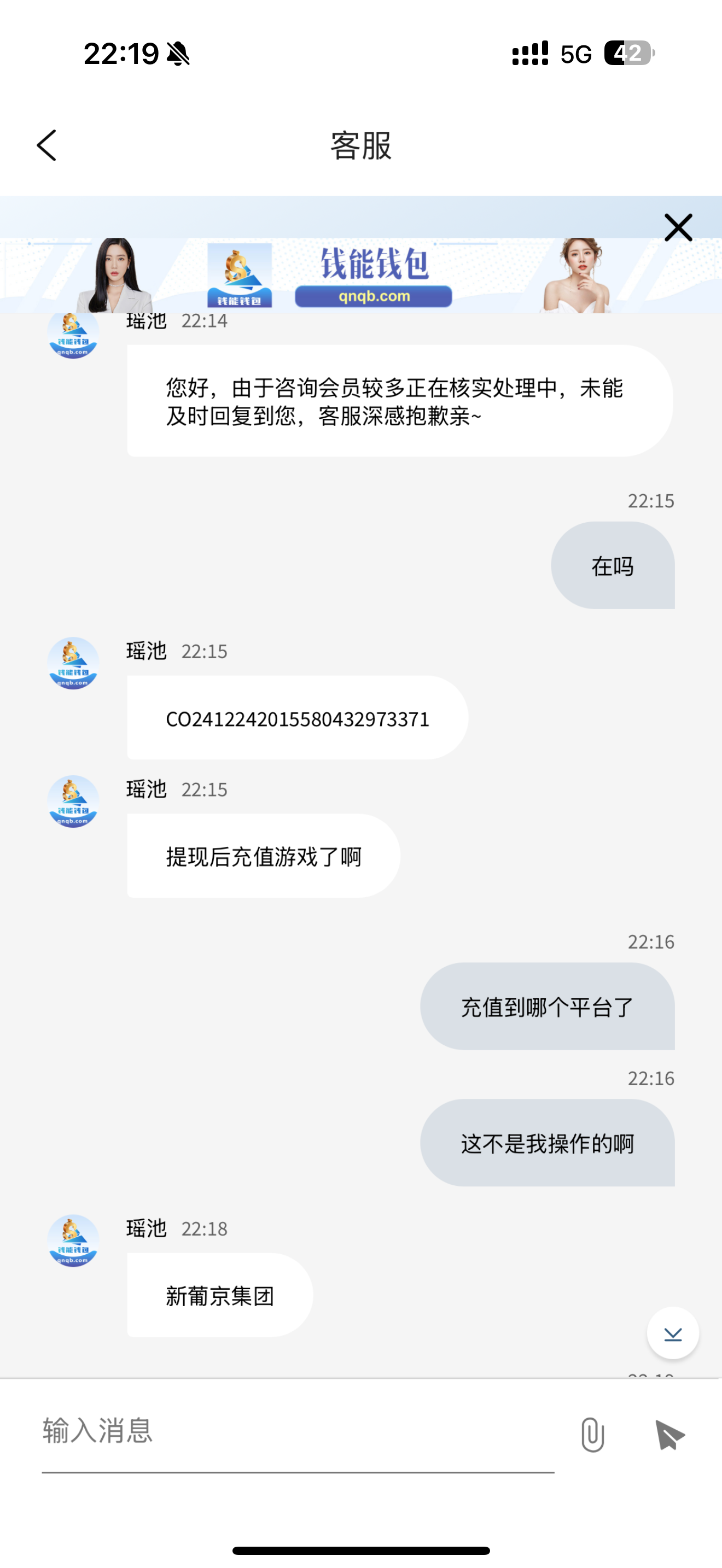 我跟你们说662也有这种操作,我被操作了一次情况跟你一模一样,顶号,然后看到被取款到了一个钱能地址,这地址不是我绑定的,然后去钱能找客服登录上去那个号,钱被充到了其他台子,真的恶心