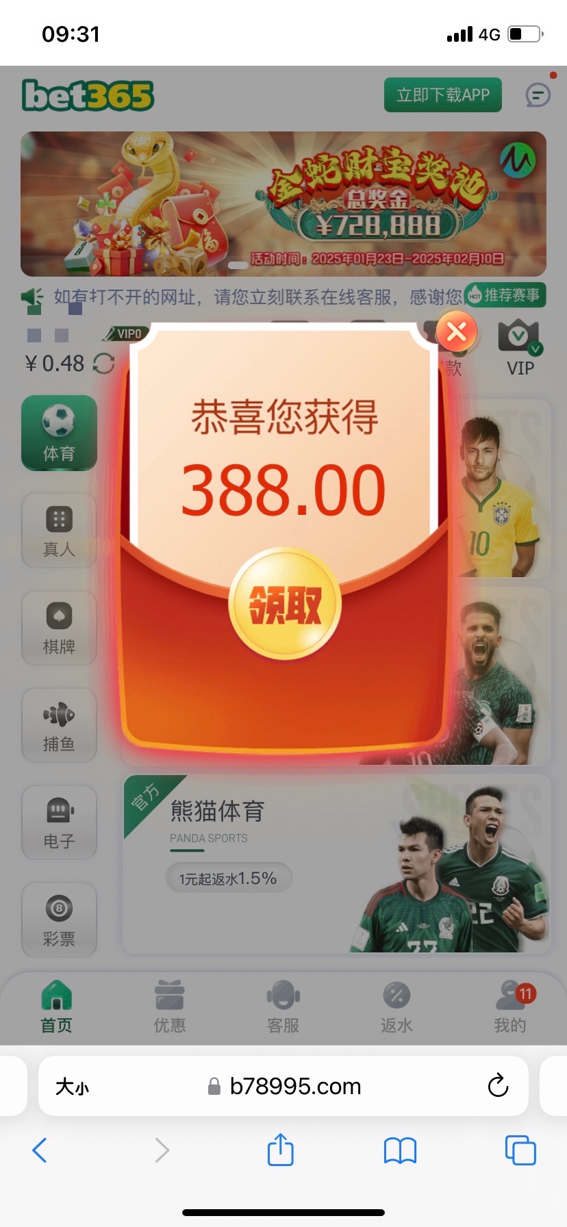 https://b78995.com。这个388彩金,我账号注册了29天,充值了100去找客服领,说我不符合,后面又充100说不在电话名单,我这几天天天找,昨天突然叫我明天来,今天去找,还真给了,充值过没给的就是去磨客服,我好像也没接电话,我就跟她说接了