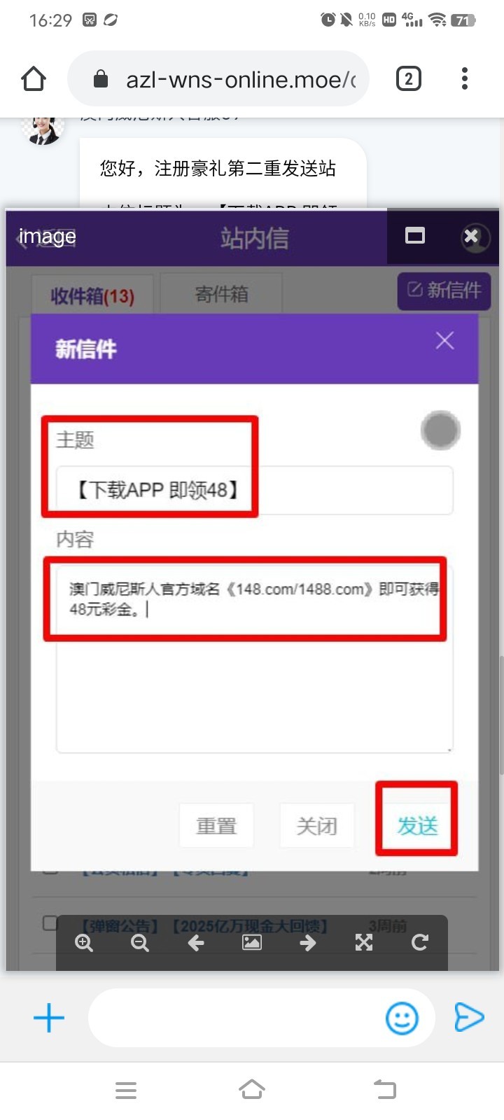 我的发了站内信,十几个小时没送