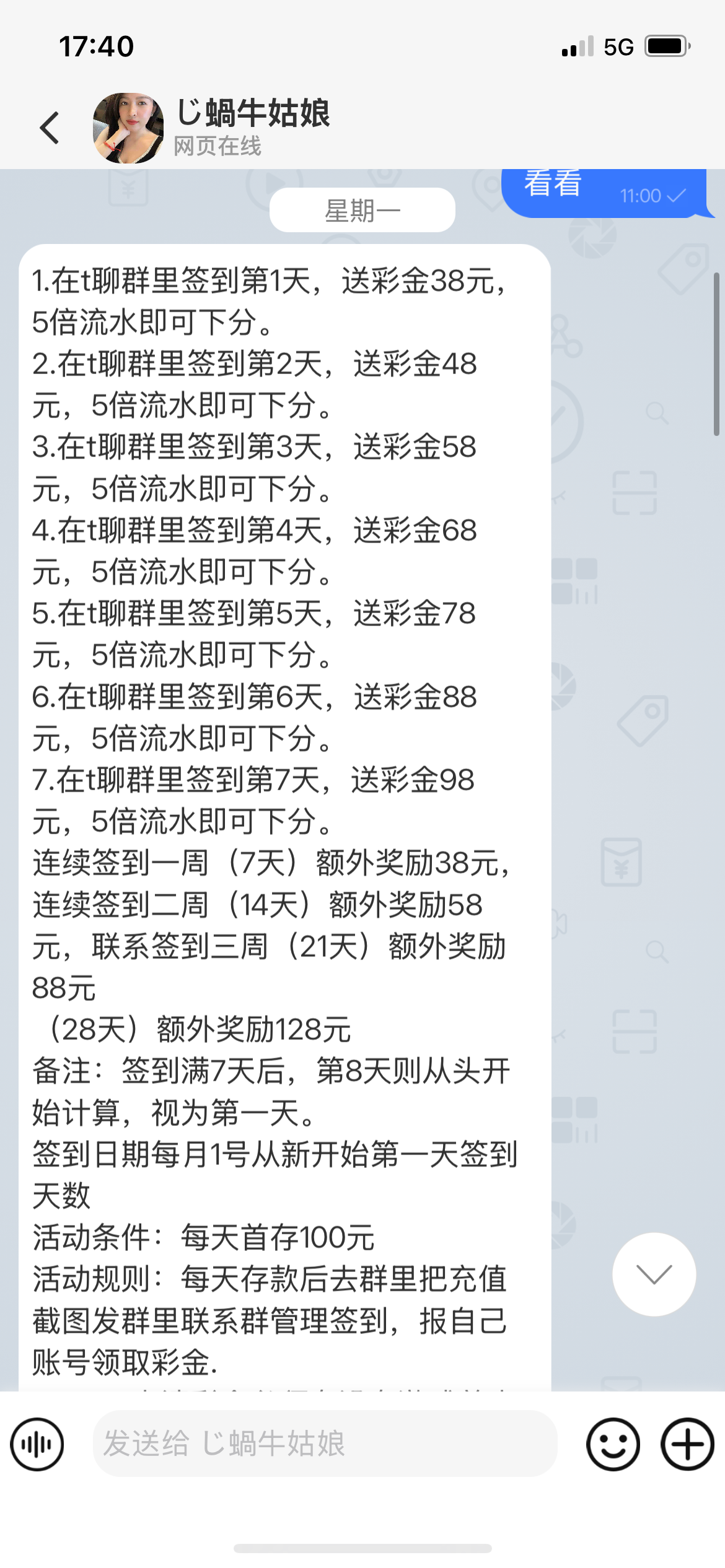 zaivszai 你是狗带吧,有个毛单!每天都要充值两百签到才送38!。送五天!合计要充1000才给!五次38