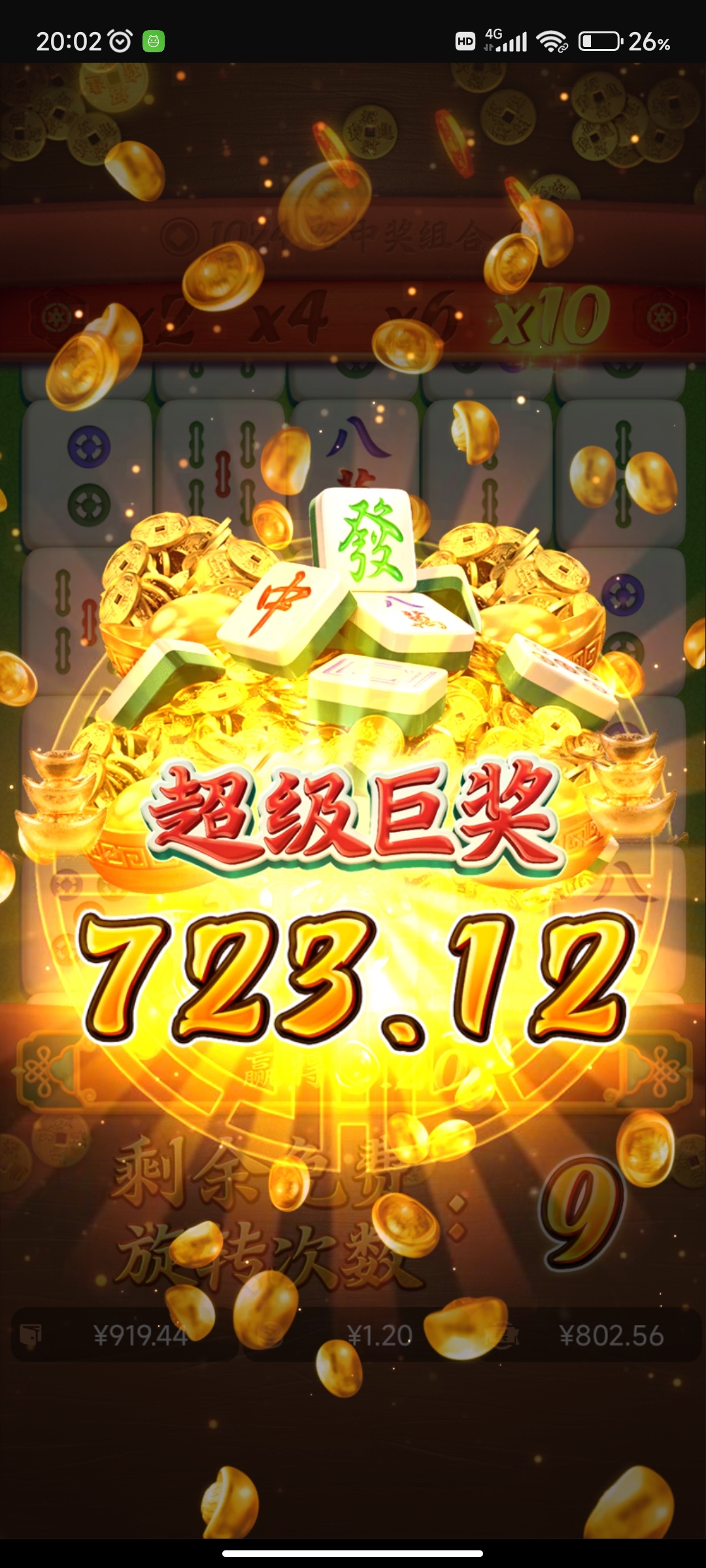 打了两个号,一个号上到40死了,一个号提855。。打了半小时一直是120左右,然后1.2麻1爆了差不多800倍上了1000。提了800,半小时没到帐。一分钱没充过,怕扣了,留200买了刮刮乐。后面充值10块钱进去,十分钟到了800。