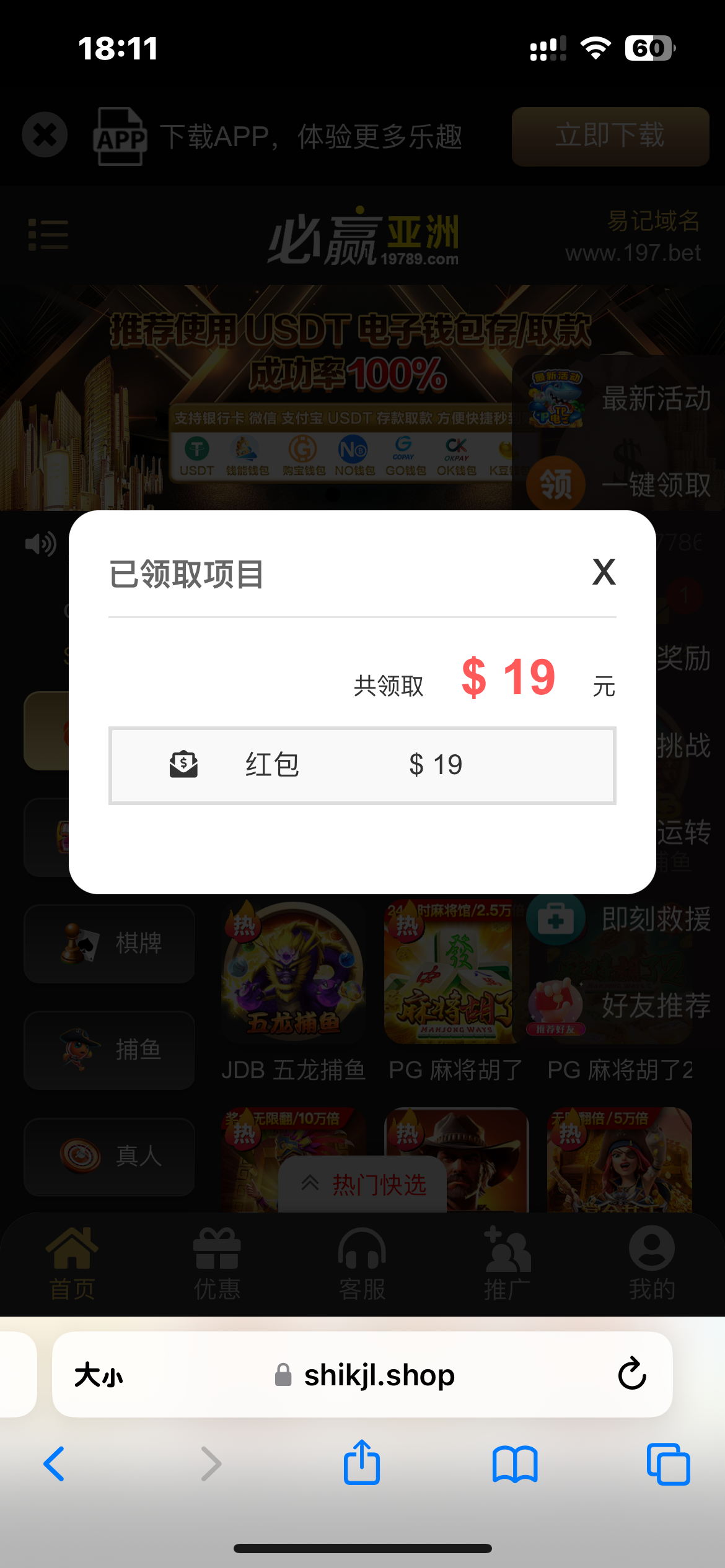红包大不大我不知道 回馈了19元 出款4600