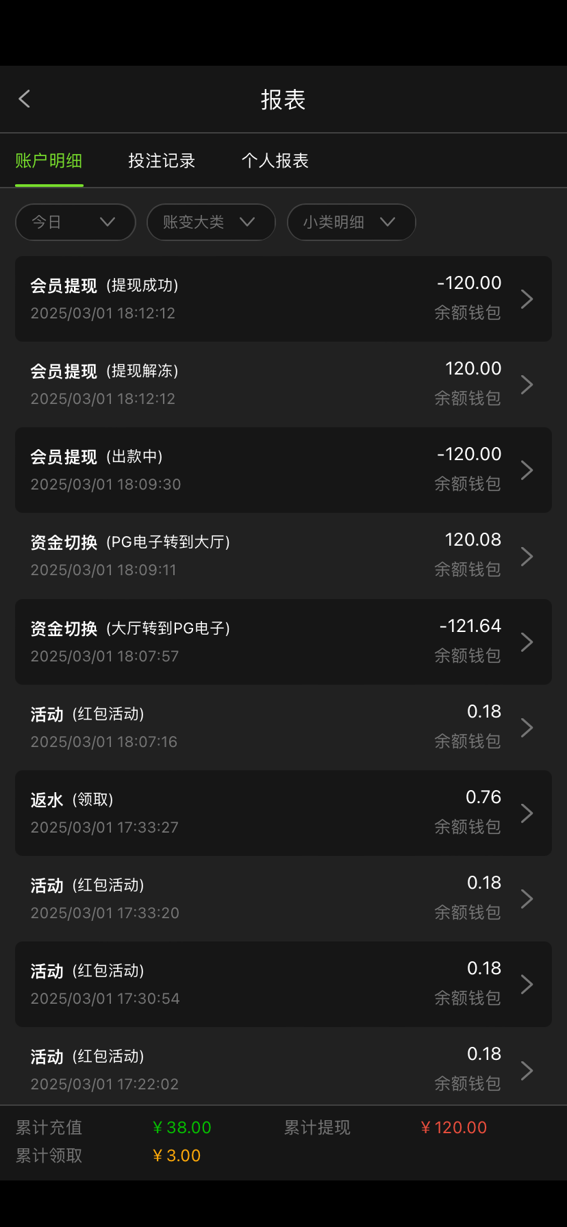 硬橡皮哈 我冲了38,打了3倍流水申请钱包福利38一直没到,但是取款秒到了