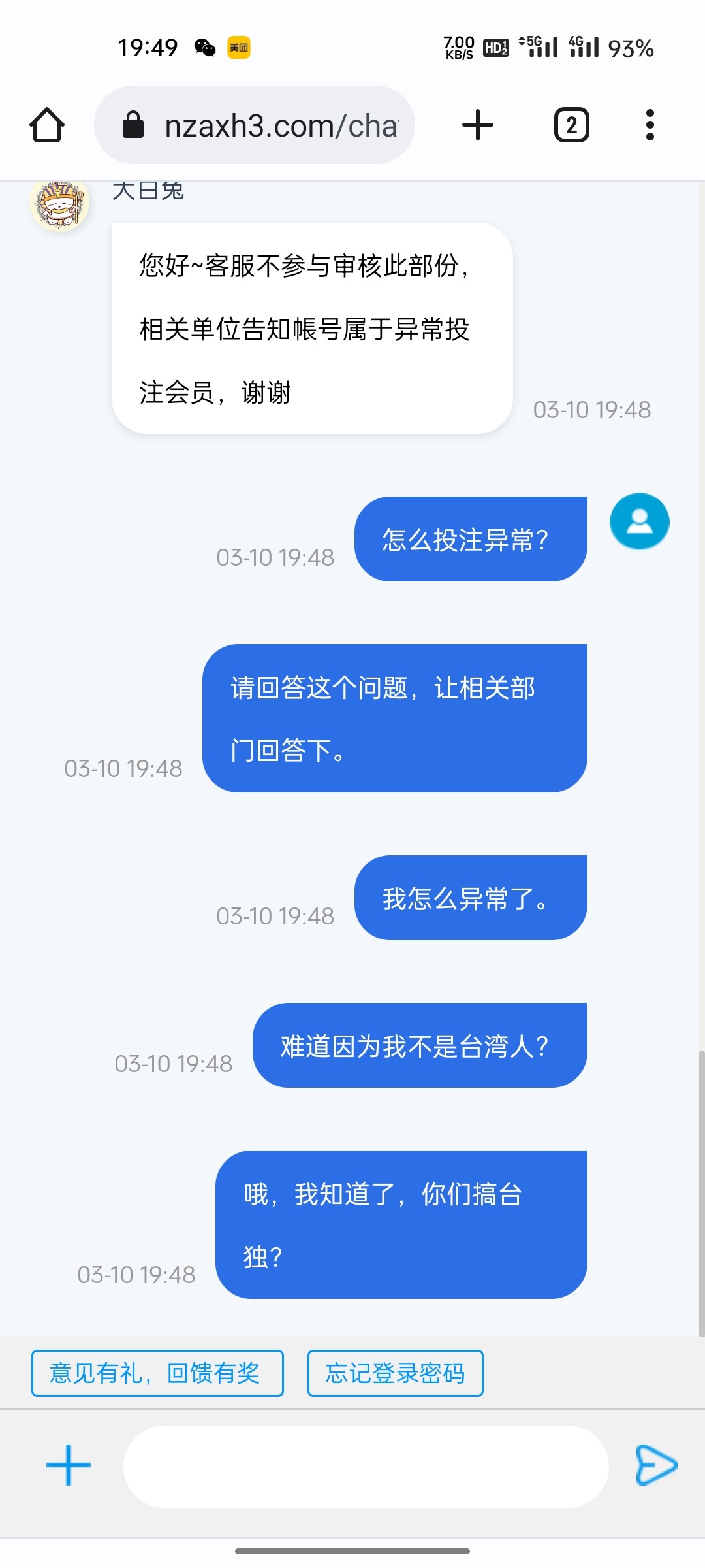 完了半年多的号了,取款一直正常,今天赢了突然不让取款,还罚流水,流水打够了然后直接封号。我草他妈的逼说什么异常投注,老子又没游戏限制什么的