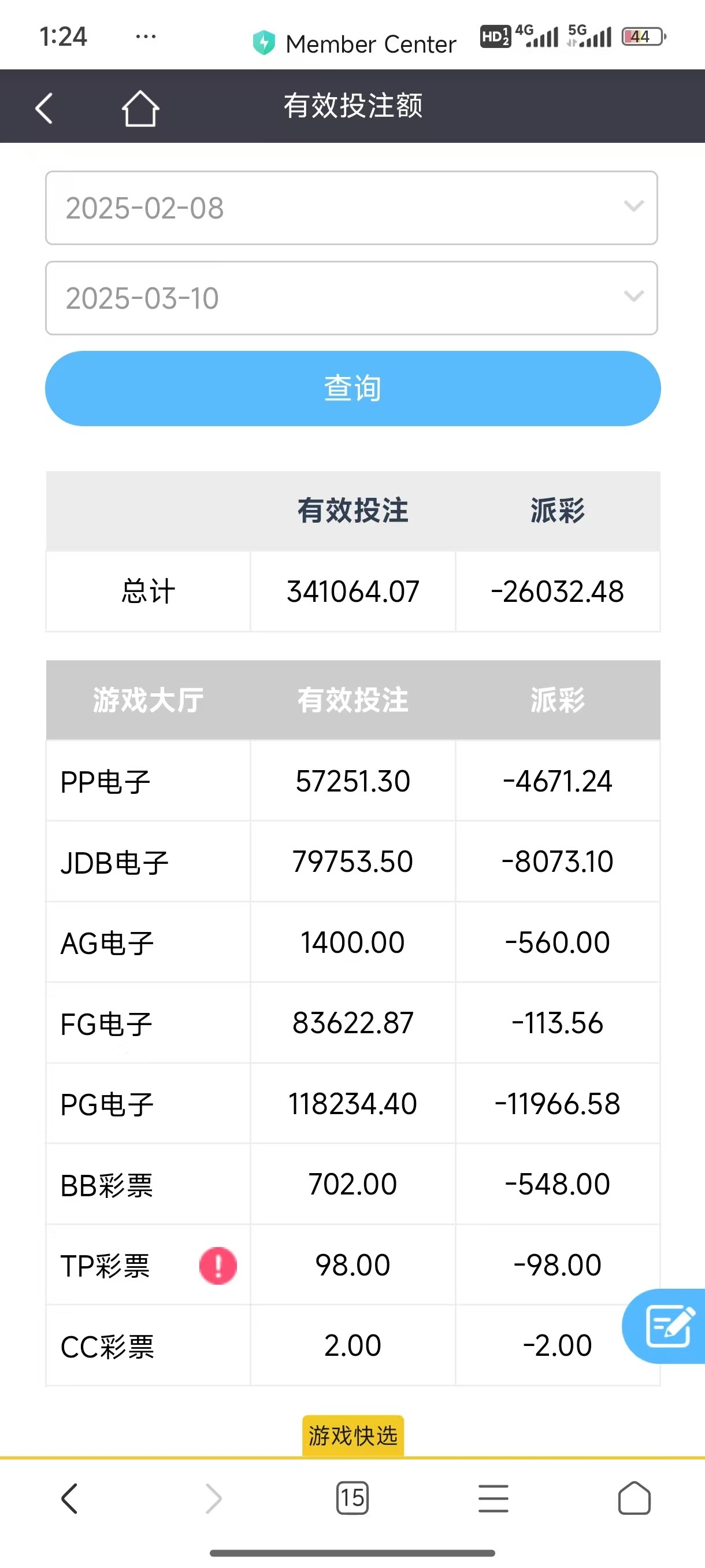 这个只能查询1个月的,1月到现在输了3 5万了,基本全是pp输的,一个高倍都没有