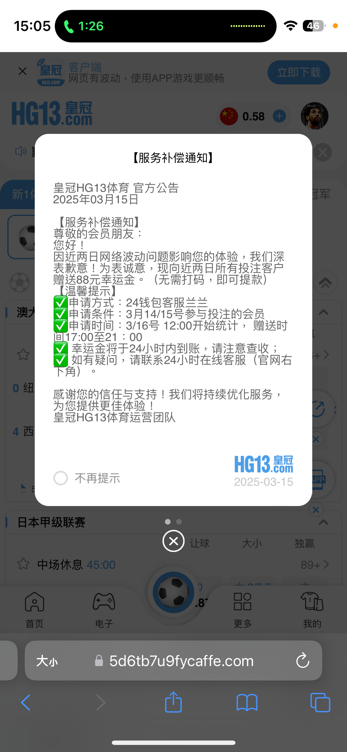 近期投注的老哥 可以申请88彩金 补偿的网址hg13.com