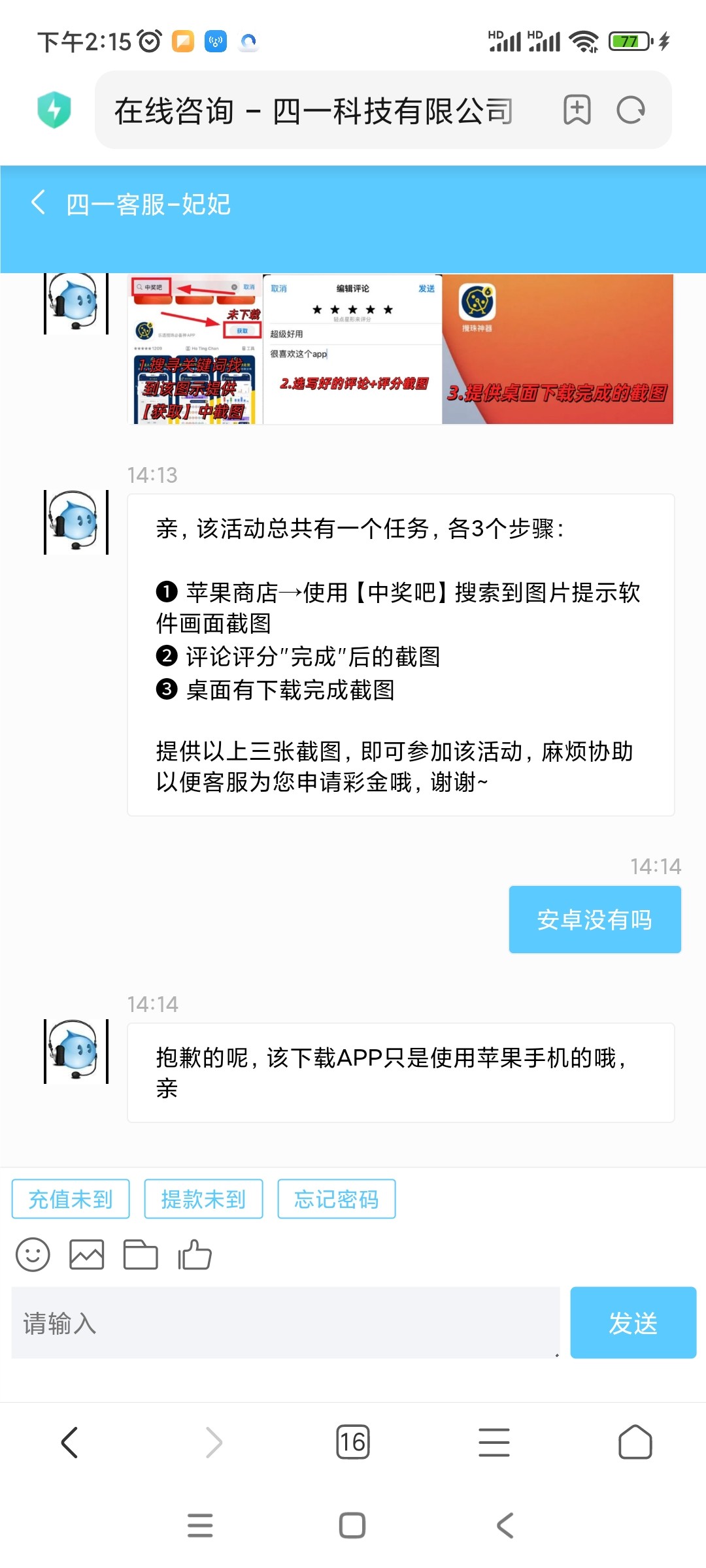 联系客服领取任务,安卓手机安装不了