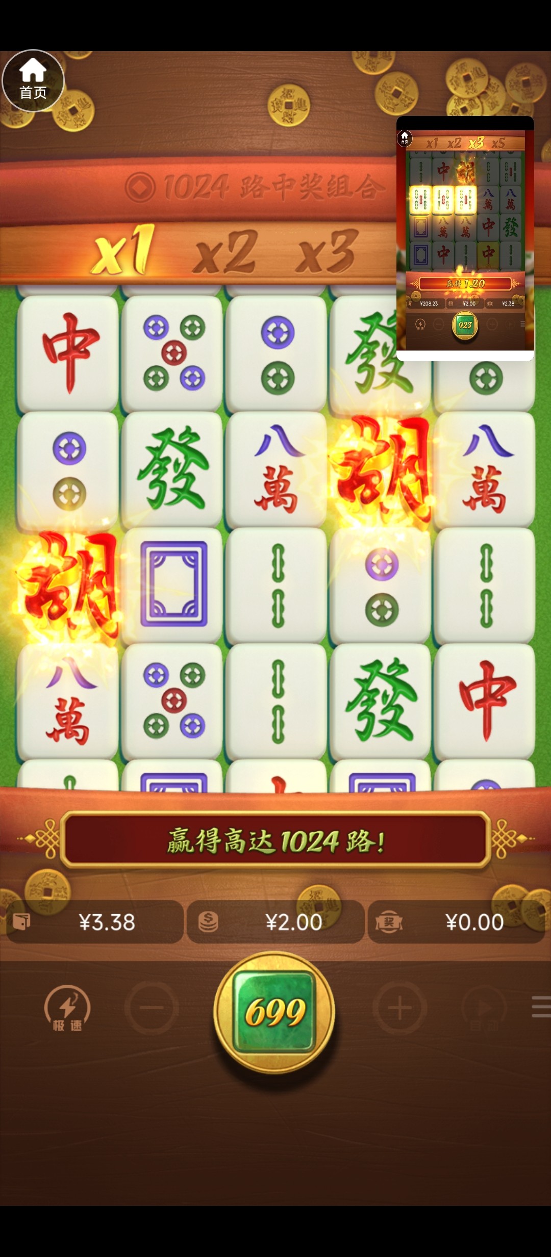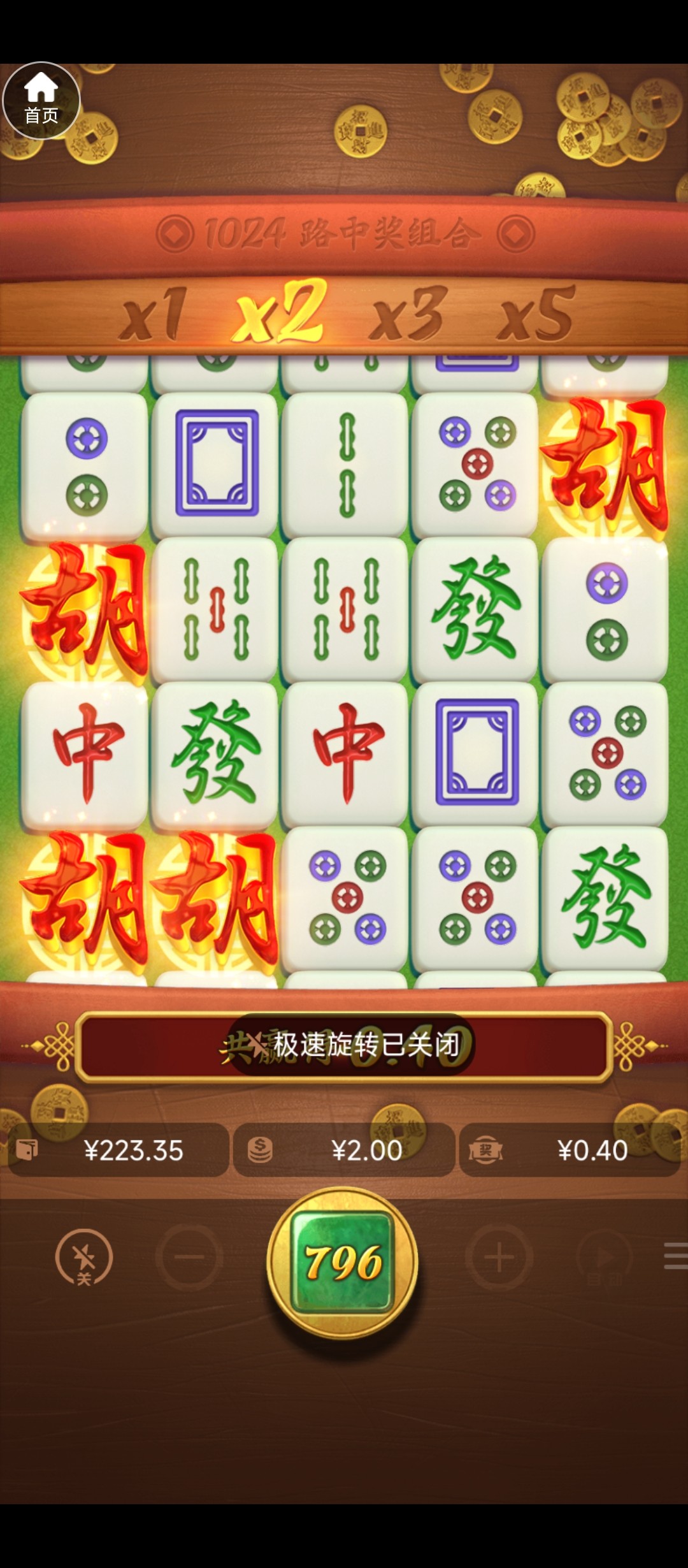 我前几天,麻1麻2  18 20的注进了20多次免费都没赢钱,每次进个免费爆几倍就出来了,真的不能玩了麻将