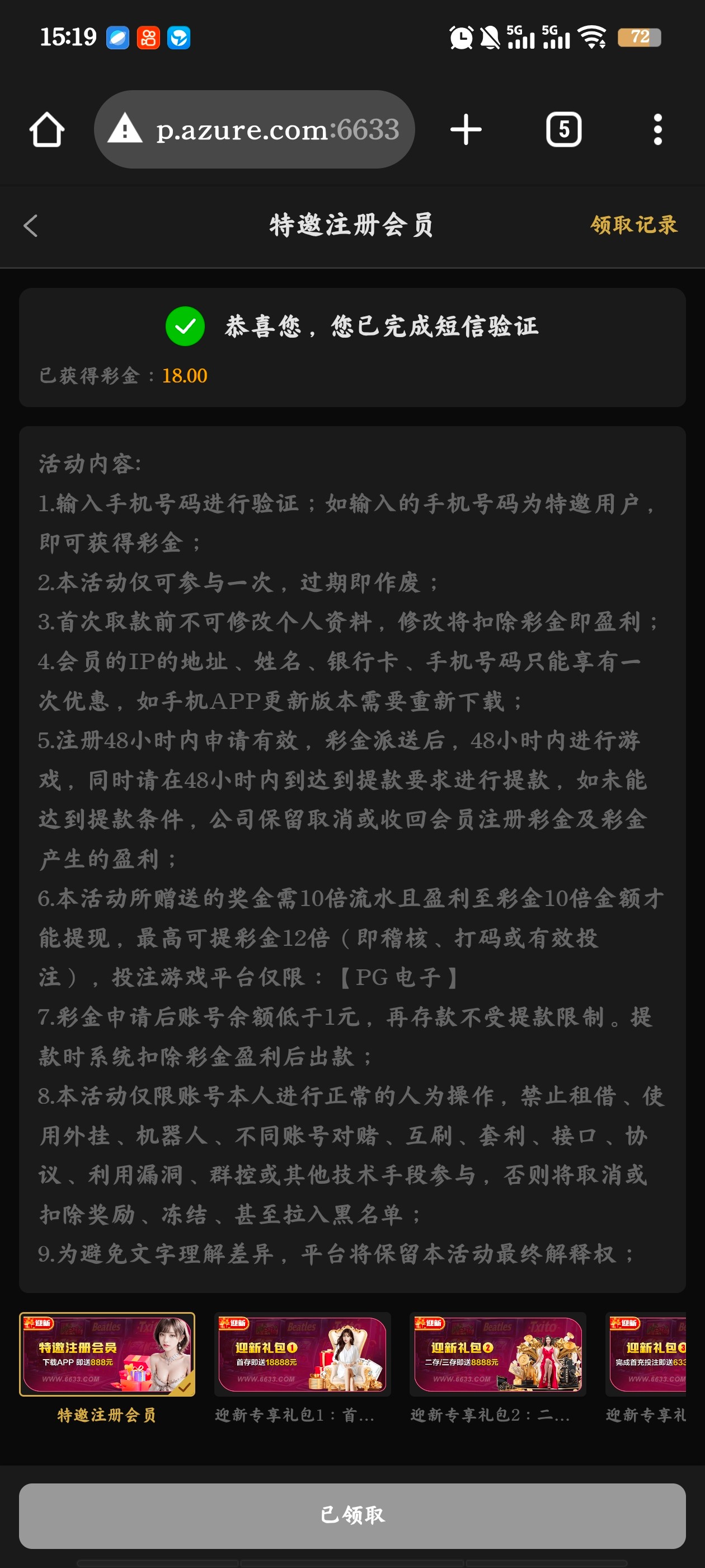 可以先注册等短信 我注册了有一个星期然后来的短信 6633.com