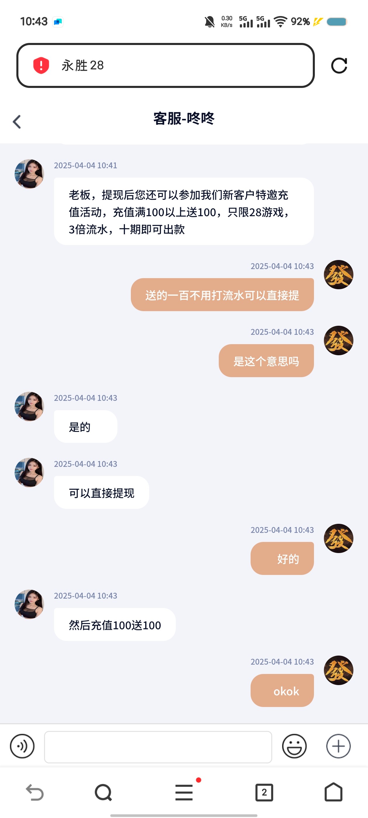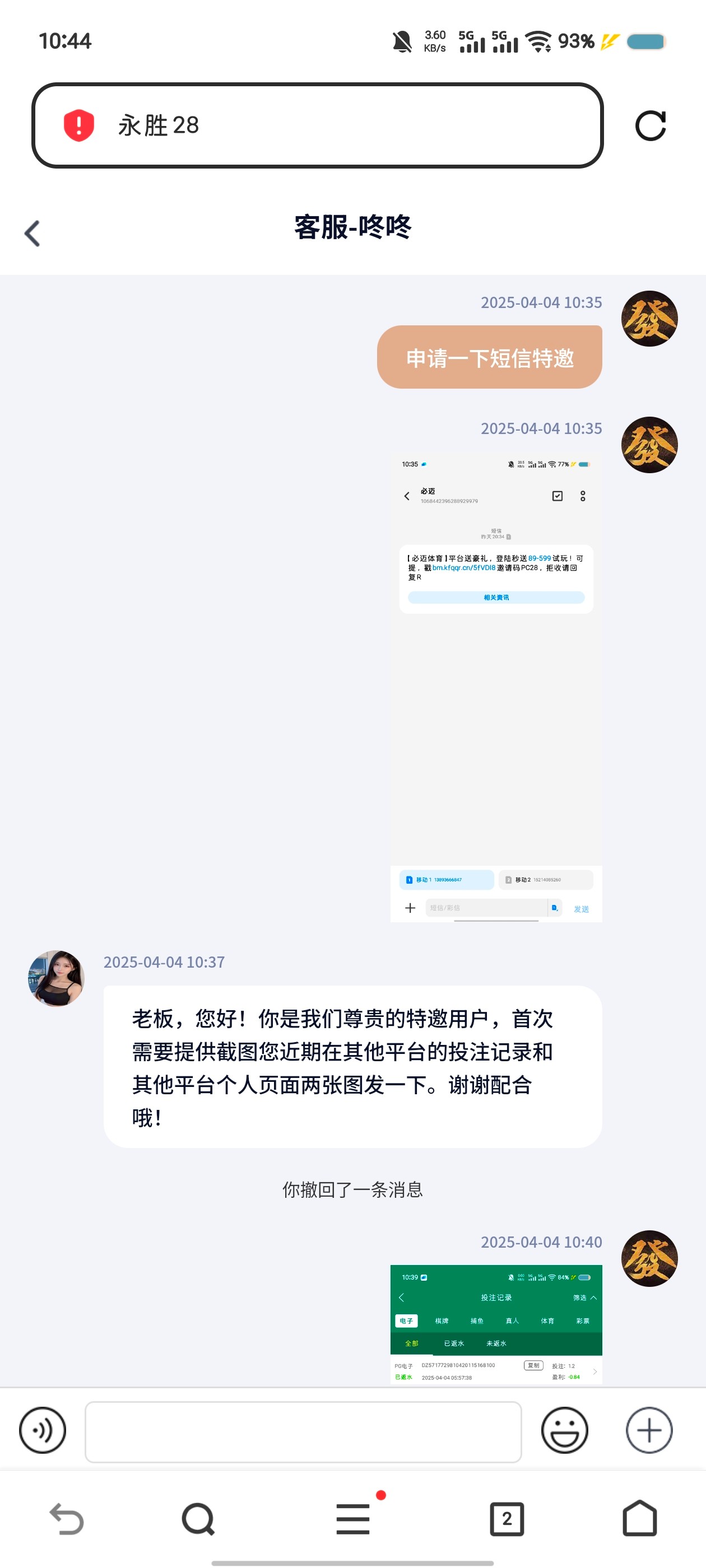 有短信的老哥可以冲了,找客服提供两个平台截图送100可直提