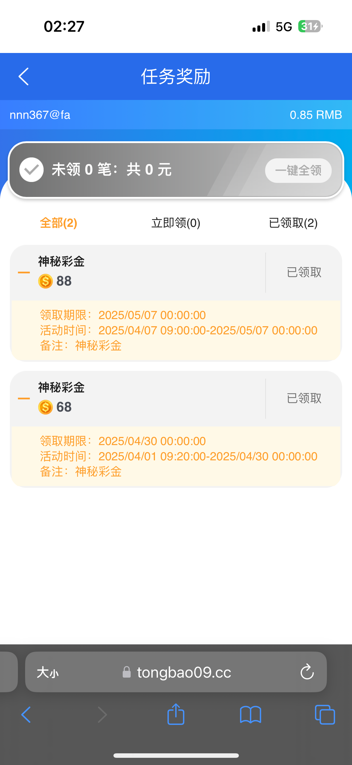 这个月领两次神秘彩金了一次68一次88