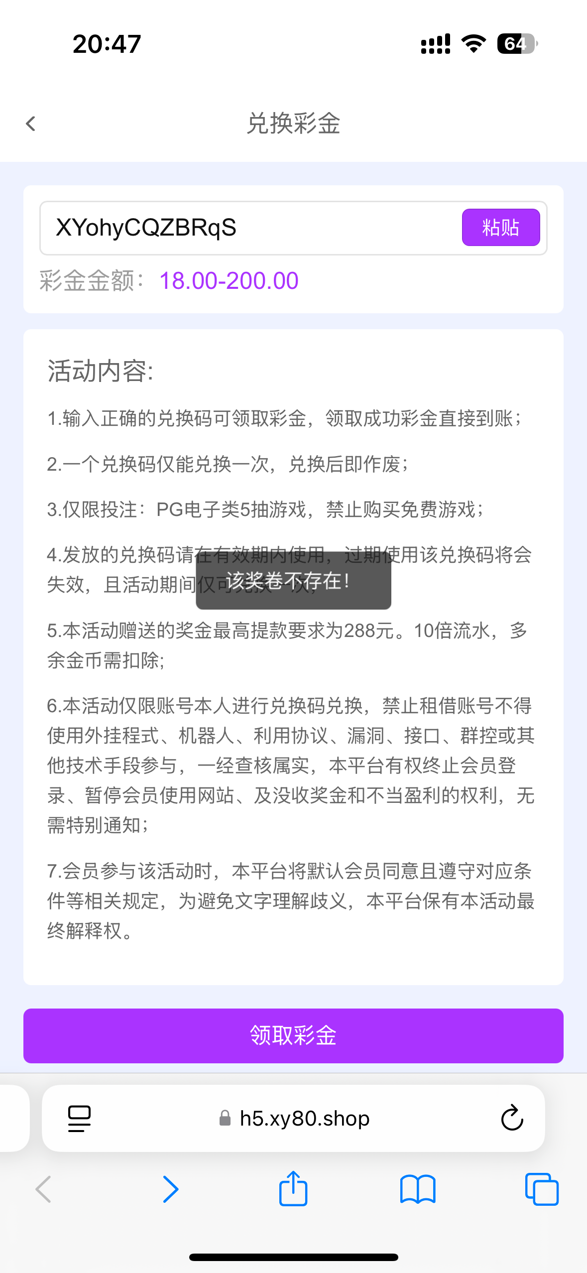 奖卷不存在