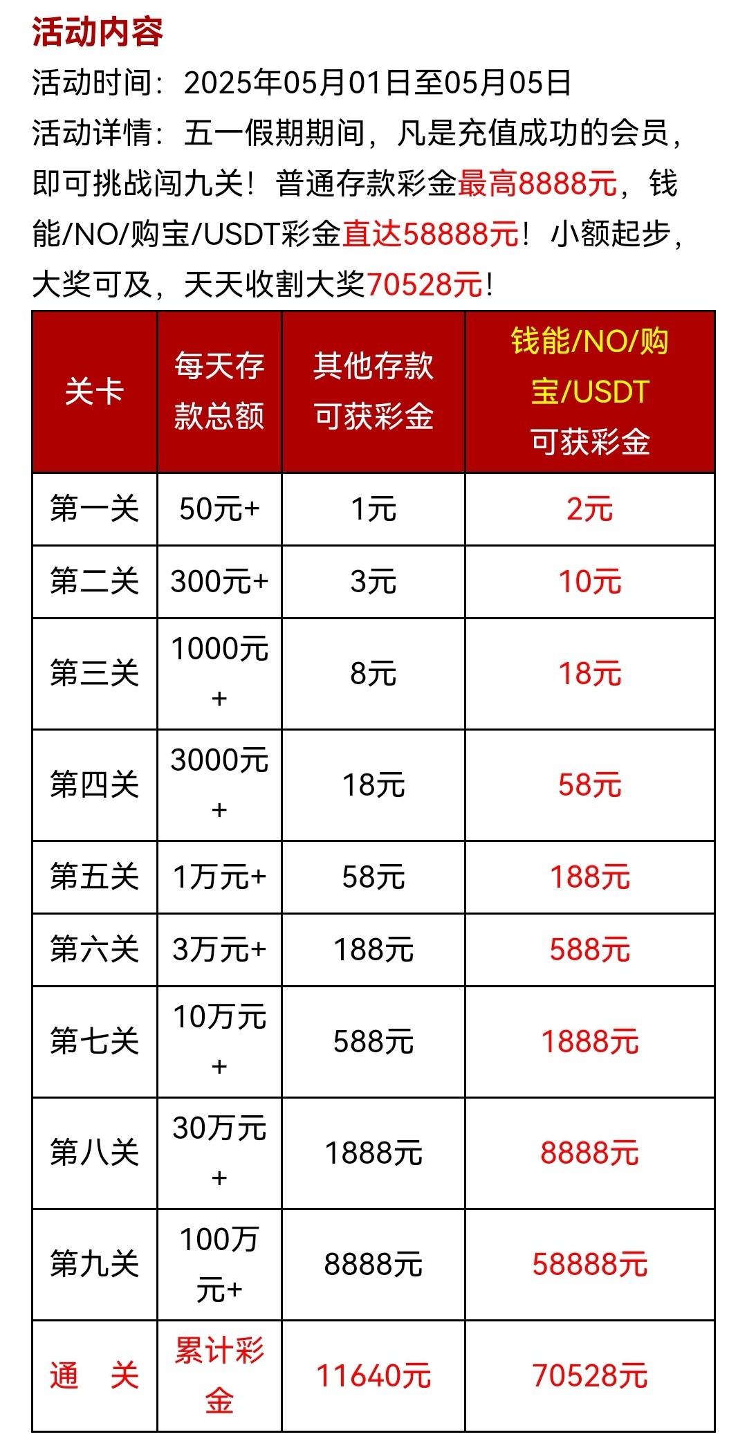 钱能系五一红包彩金