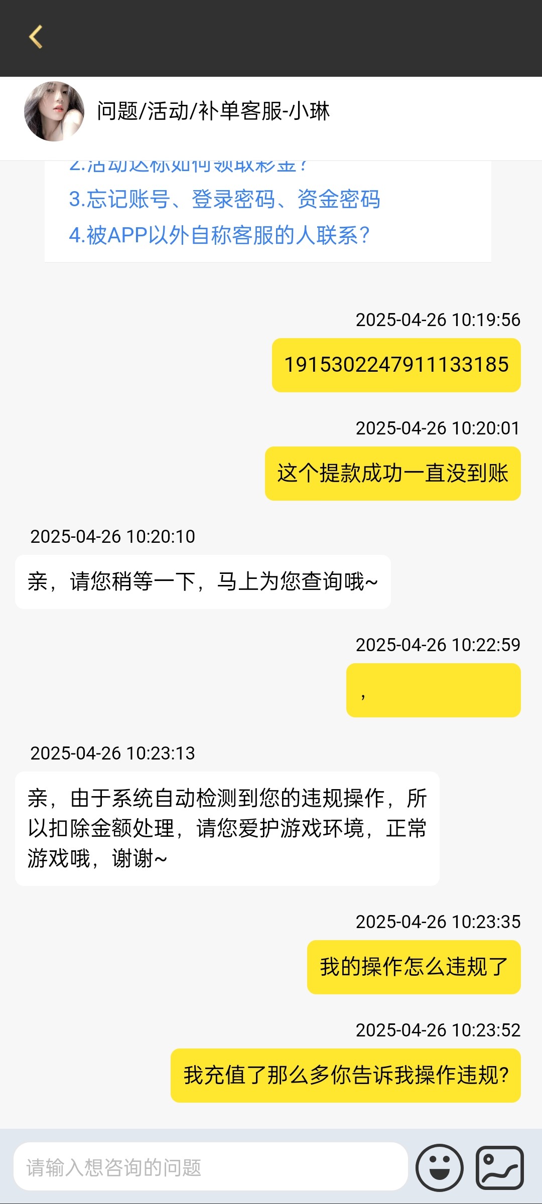 a20295 那你意思我充值几千赚几百不套利吗,这种平台他就没有福利可以领的,你充多少是多少,为什么存在套利这个词呢?他就是不想给你下分享,把你黑的这么简单,哪有什么套不套的问题,你玩过德啊