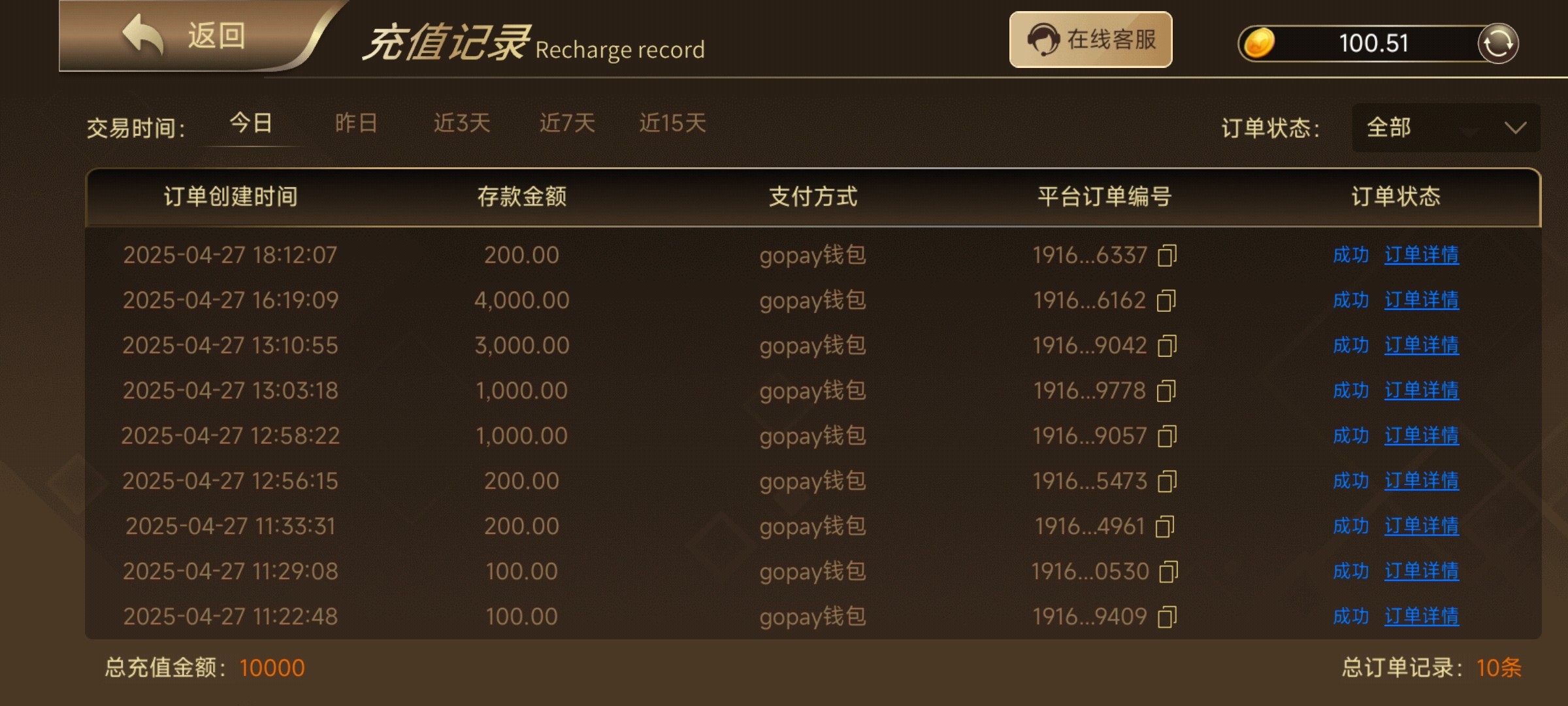 今天充值一万彩金200反水200 流水彩金188杂七杂八600,刚好没输没赢,最后一波2000过三关怂了,平买两波,就扯了,敢上就是1.6w