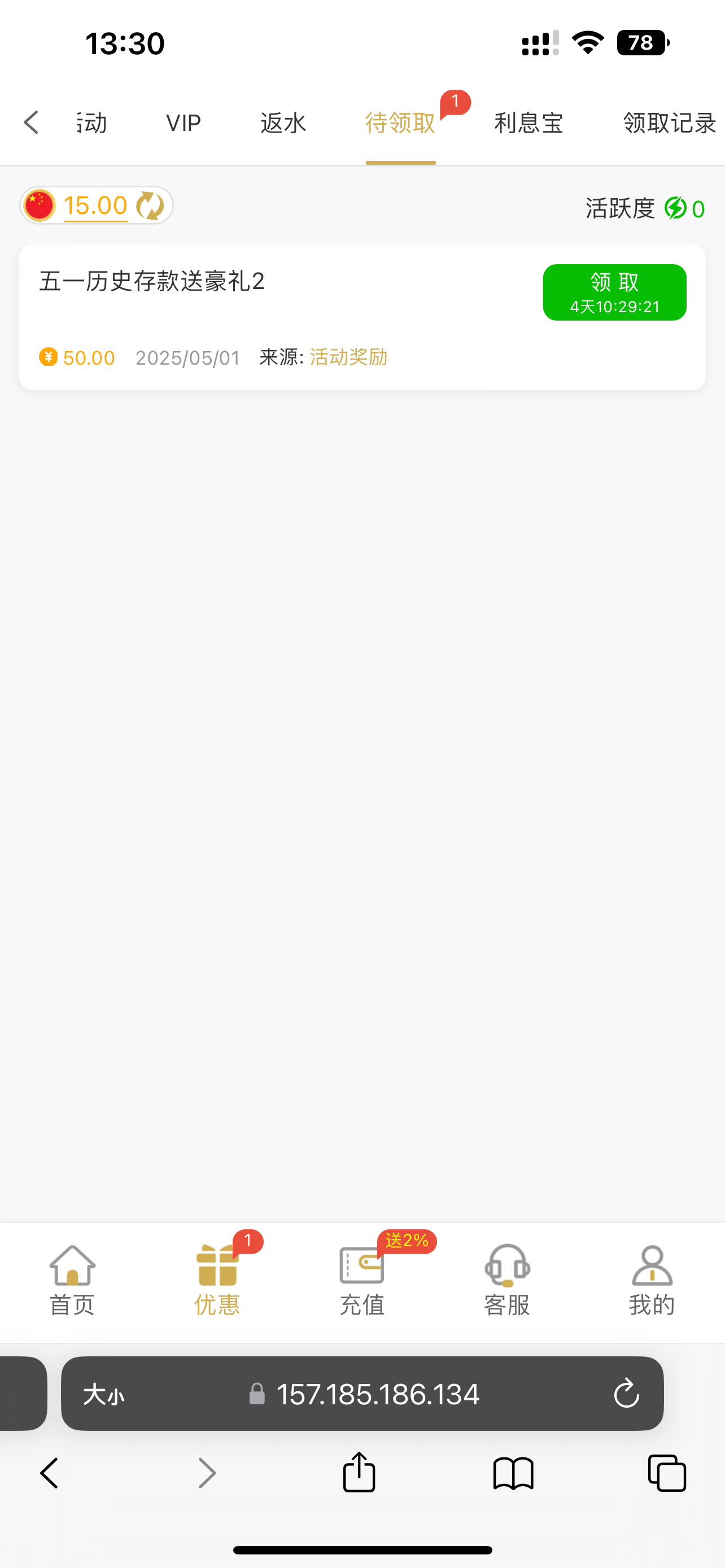 你看清楚没有?统计的是昨天的一天的存款并不是历史所有存款他只算4.30一天的哥们,他不敢算之前的因为之前太多人打过以小博大,一下子会送太多他玩不起,这台子扣扣搜搜的,还是别想了,神秘彩金都发个1.88的逼台子,还特意打个电话骚扰一下你