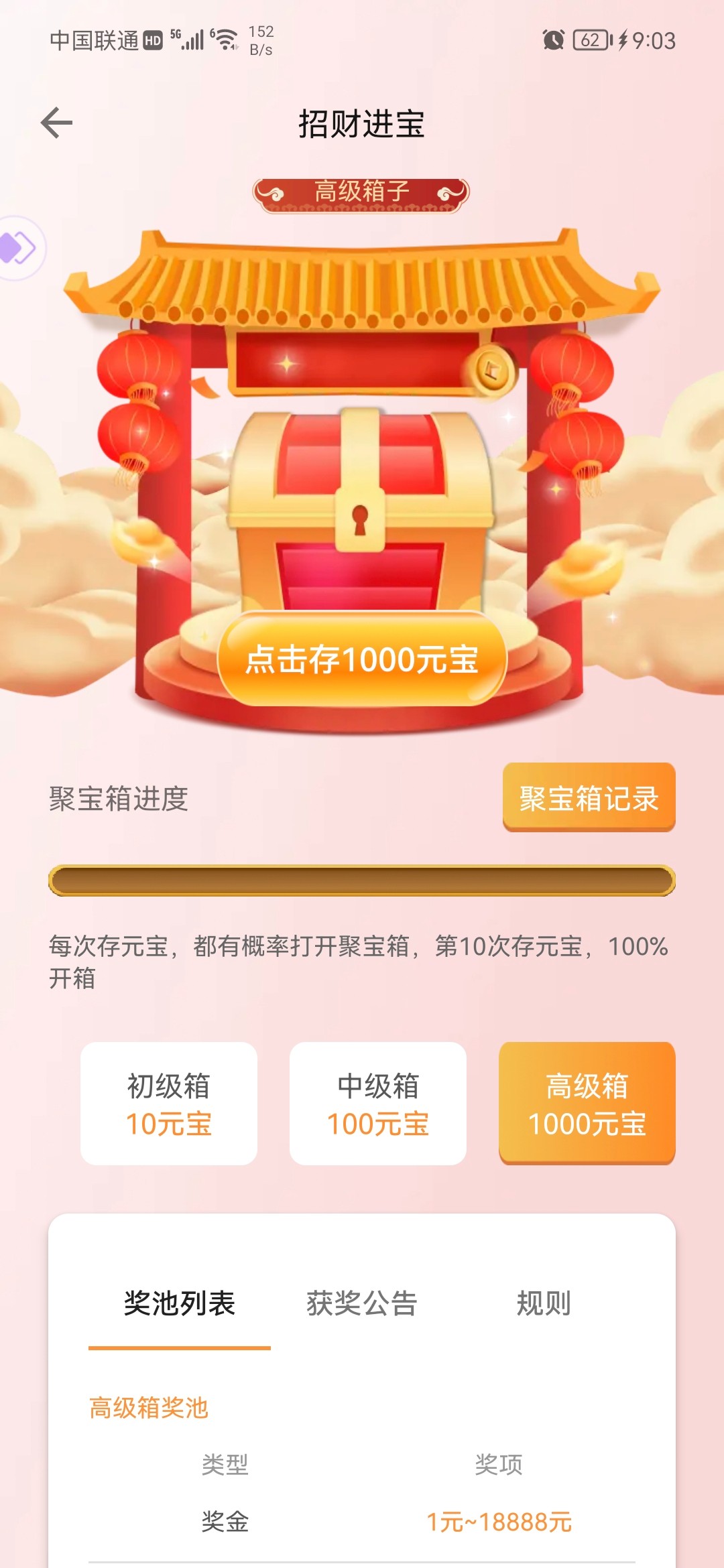你走错频道了,还有个开箱的活动,钱能日存可以开箱最高是88w